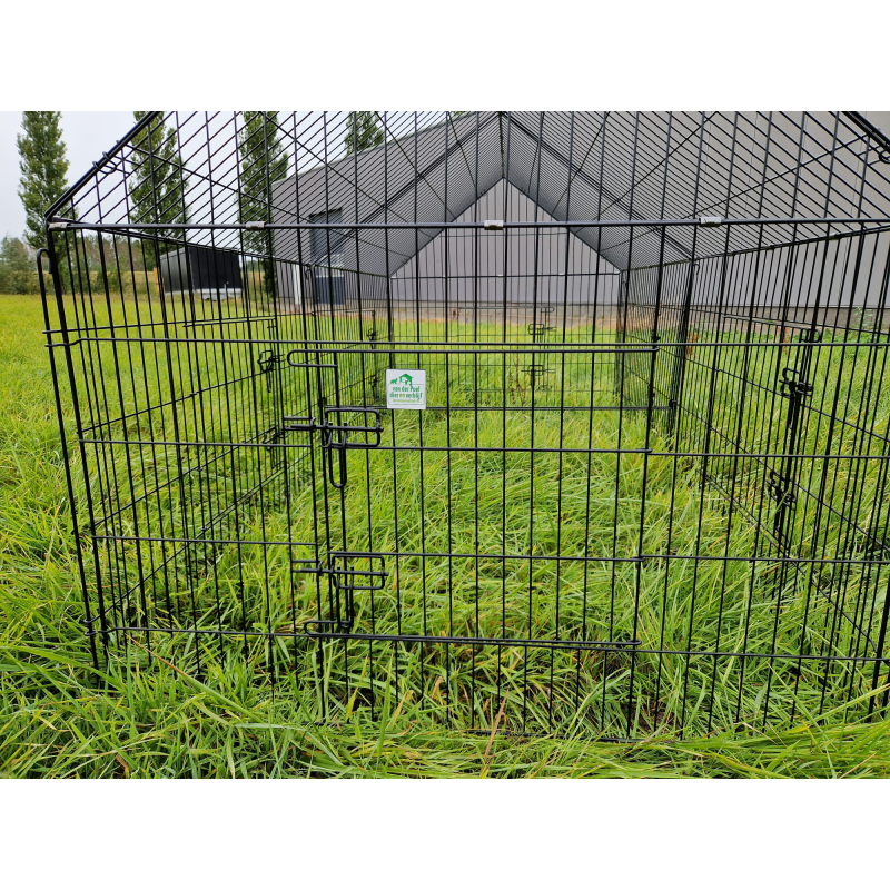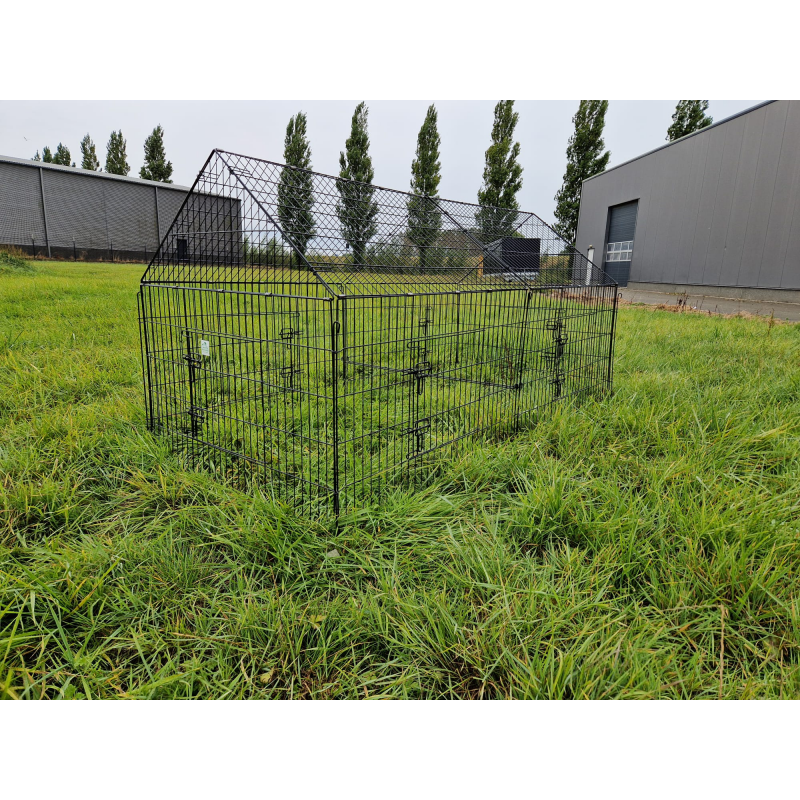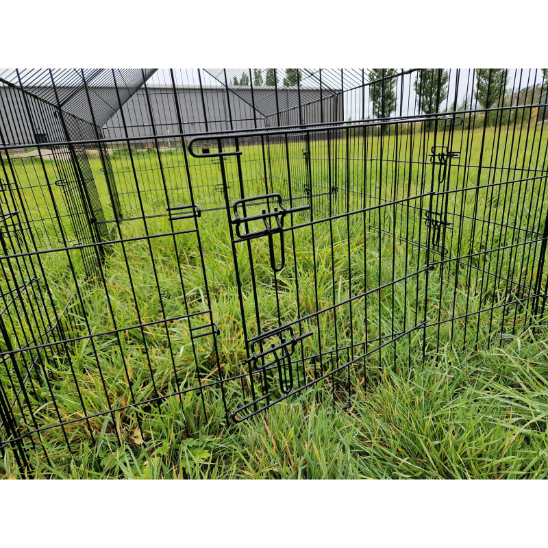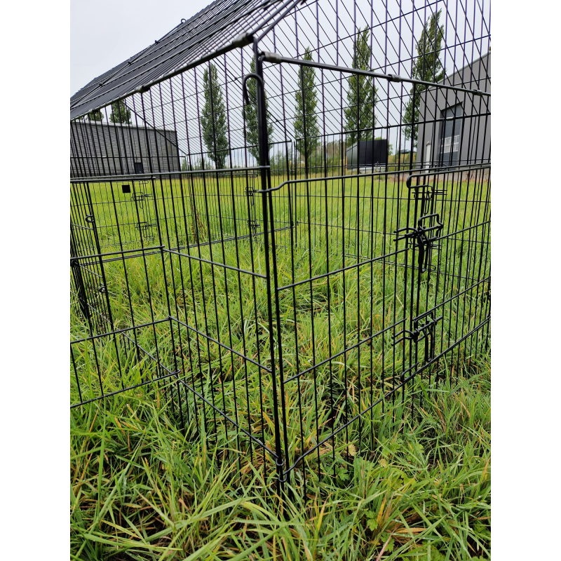 Deze stevige ren heeft een afgesloten bovenkant, waardoor je dieren beschermd zijn tegen roofdieren zoals roofvogels, katten en vossen. De ren is voorzien van wel zes deurtjes, hierdoor is deze aan de binnenkant makkelijk te bereiken. verder bestaat deren uit losse panelen die eenvoudig aan elkaar bevestigd kunnen worden met de bijgeleverde pinnen. Wil je de ren ergens anders plaatsen? Door de losse panelen gaat dit erg makkelijk. Gebruik je de ren niet? Dan kan je de losse panelen makkelijk opbergen.
