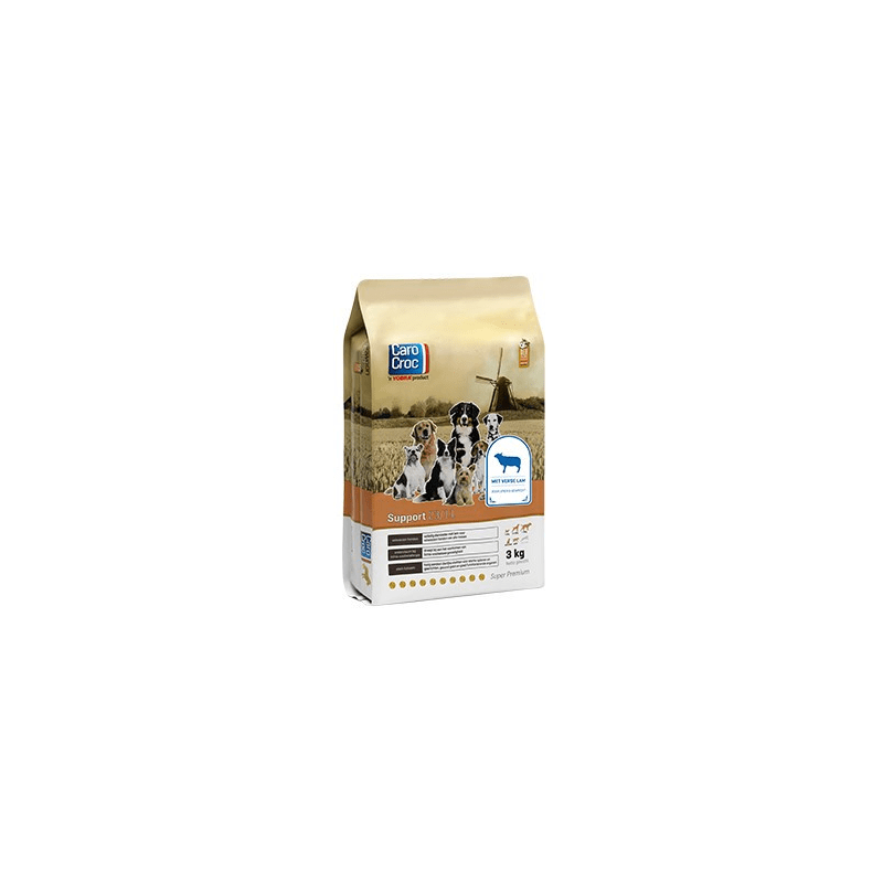 CaroCroc Support is een volledig voer en draagt bij aan het voorkomen van voedselallergieën. CaroCroc Support is zeer smakelijk en bevat alle benodigde bouwstoffen voor instandhouding van spieren, sterk beendergestel, gezond gebit, goed functionerende organen en een glanzende vacht.
