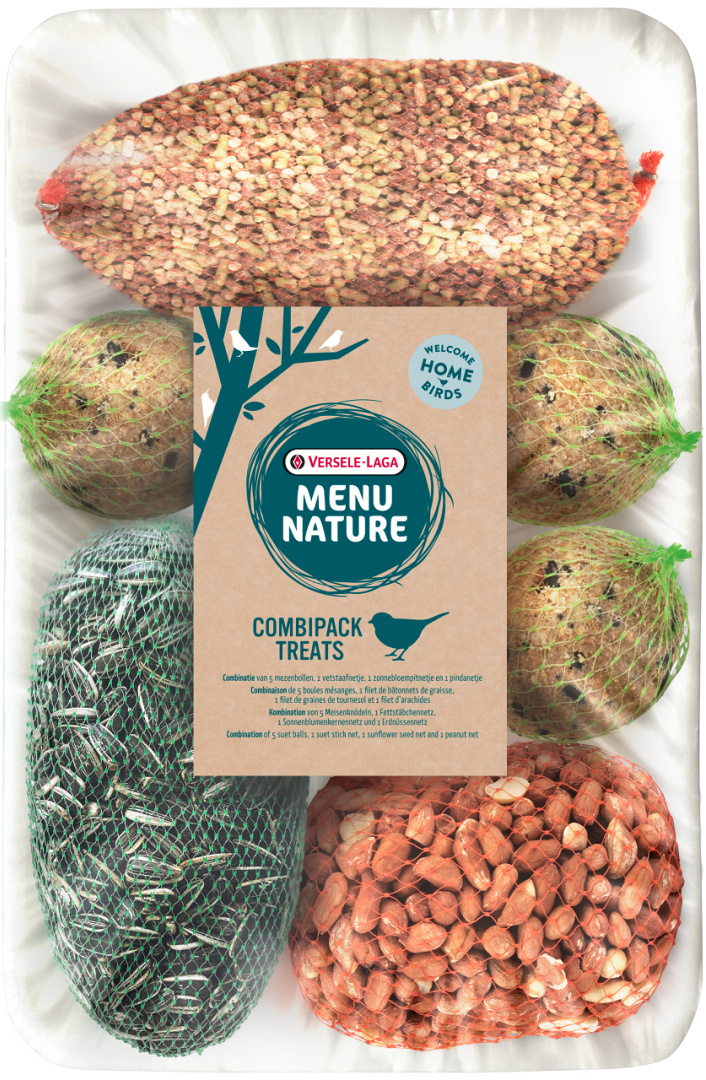 5 mezenbollen, suet netje, zonnebloempitten- en pindanetje