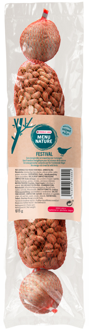 5-delige slinger, met 3 mezenbollen en 2 pindanetjes - Mezenbol is een mengeling van zuiver rundervet, granen en zaden - Ongebrande pinda's in een handig langwerpig netje - Ideaal voor de winterperiode