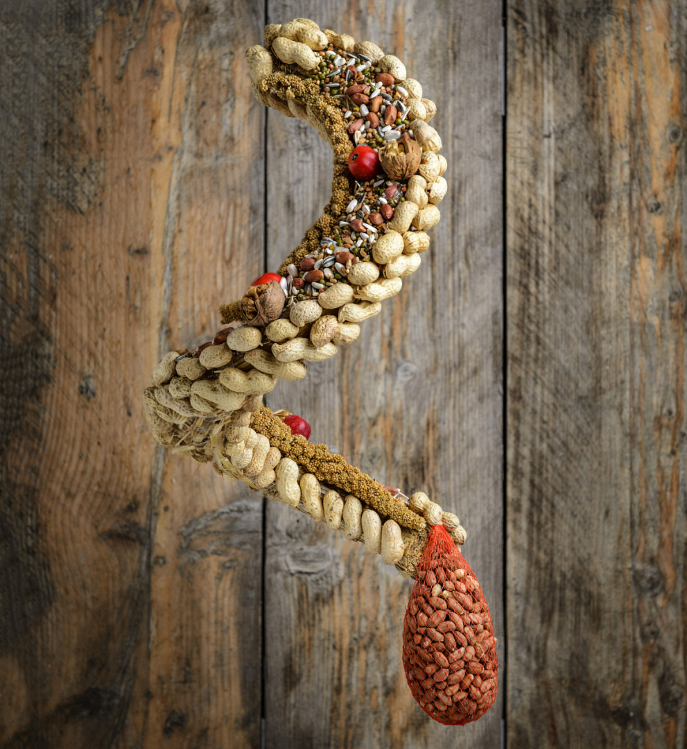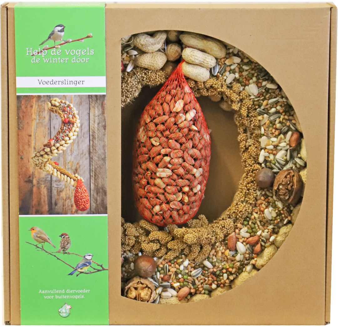De voederslinger is een aanvullend diervoeder gevuld met verschillende lekkernijen voor buitenvogels.