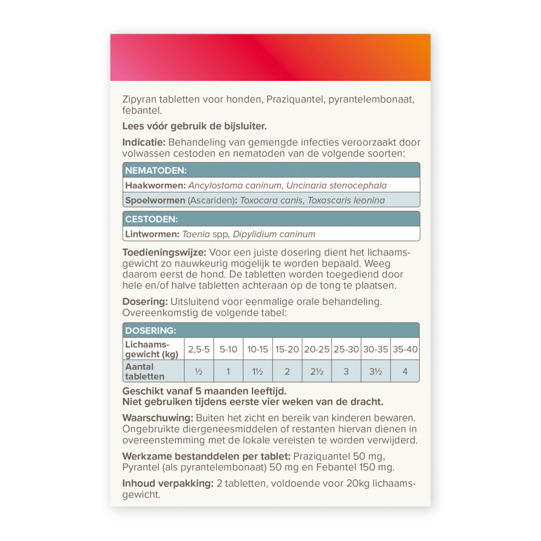 • Tegen spoelwormen, haakwormen en lintwormen