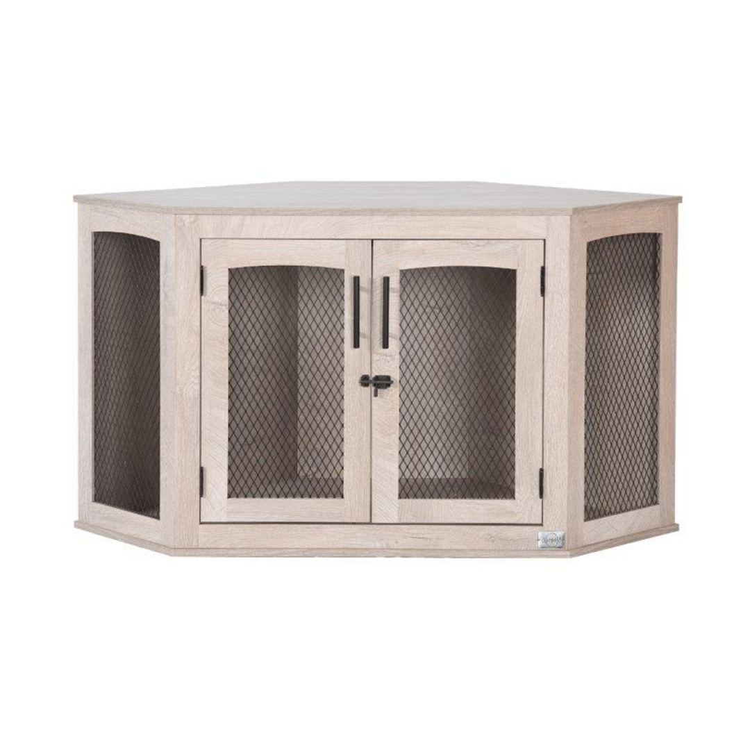 Quapas! Premium Indoor Doghouse Corner is een hoekmodel hondenbench, met eigentijdse uitstraling, voor gebruik binnenshuis. Voorzien van 2 deuren, uitneembare lade en een comfortabel kussen.
