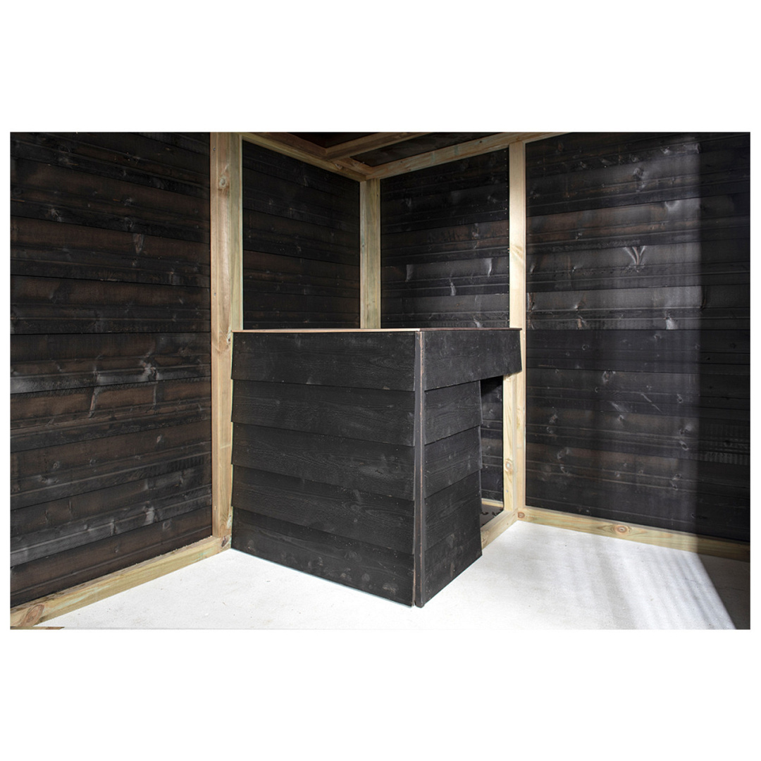 De hondenkennel Rex van Voldux is afgewerkt met prachtige zwarte potdekseldelen, dit geeft de hondenkennel een landelijke uitstraling. Voor het frame is geïmpregneerd grenenhout gebruikt, behandeld en hierdoor perfect geschikt voor langdurig buitengebruik. Deze kennel biedt dan ook minstens 10 -15 jaar onderhoudsvrij plezier!