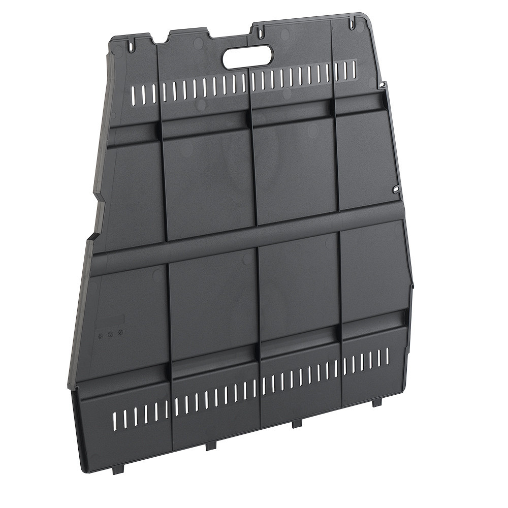 Het tussenschot is gemaakt van stevig plastic en heeft een gat in de bovenkant waardoor je deze gemakkelijk kunt vast pakken. Kleine ventilatieroosters in het schot laten de lucht circuleren.