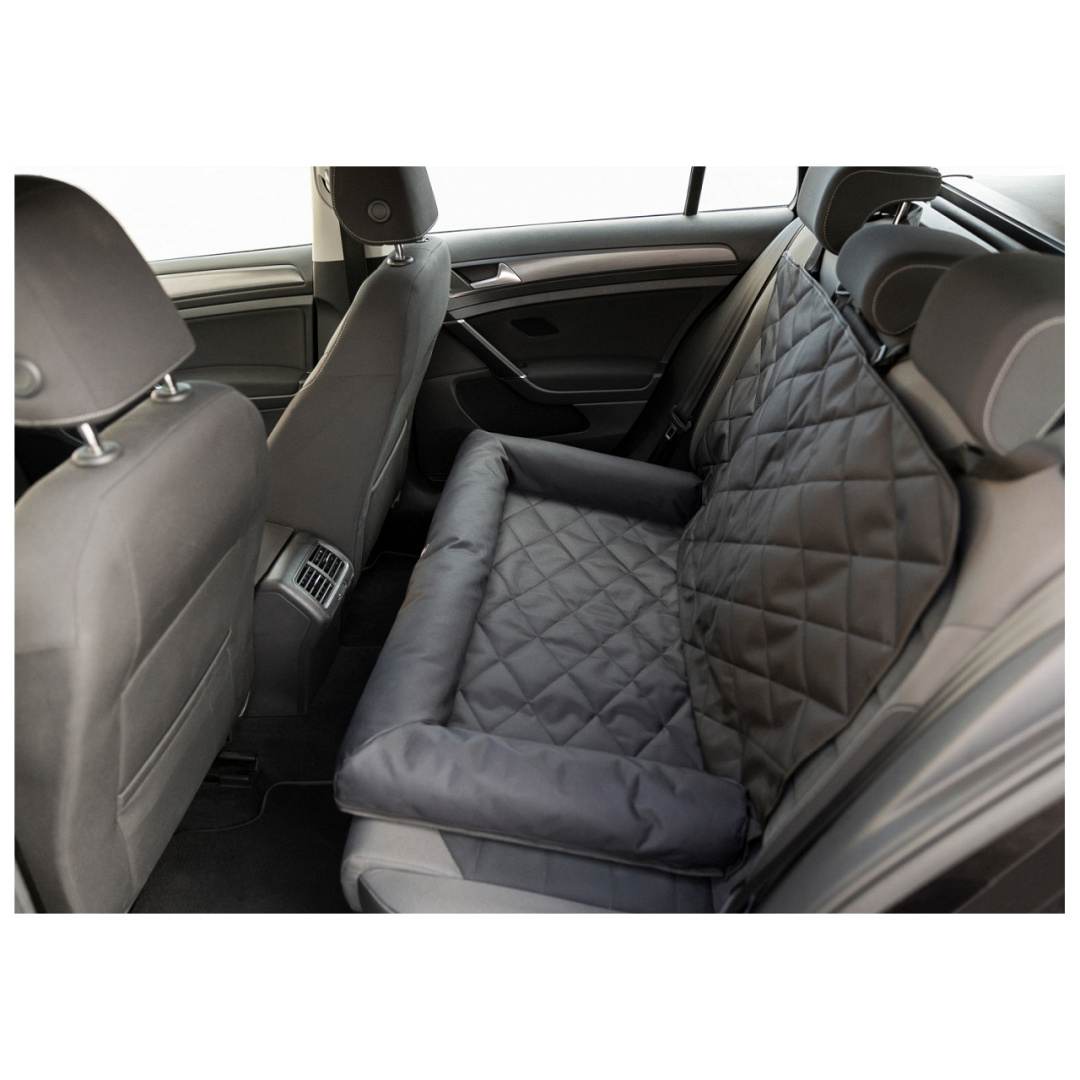 Autostoelkussen voor één middelgrote of twee kleine honden, om ze veilig te vervoeren. Beschermt ook de bekleding tegen haren en vuil.