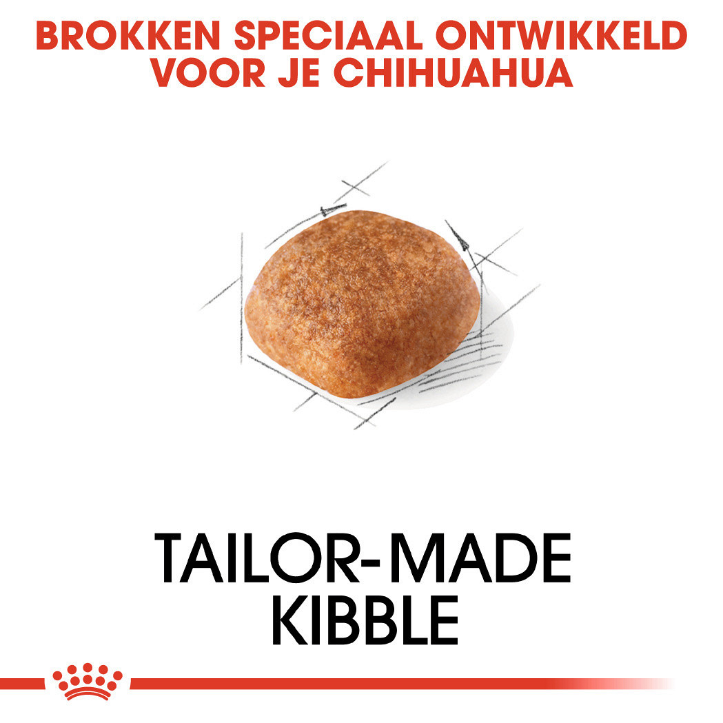 Zit je Chihuahua weer mistroostig naar een volle etensbak te kijken. Heeft hij er weer weinig trek in? Niet heel gek. Chihuahua's staan namelijk bekend om hun kleine eetlust. Het zijn nu eenmaal kieskeurige eters. Speciaal daarom is Royal Canin Chihuahua Adult ontwikkeld, wat voldoet aan de smaakeisen van zelfs de kieskeurigste eter.