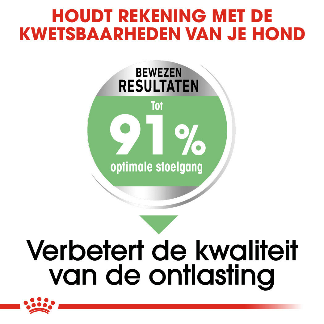 Royal Canin Digestive Care Medium geeft in 91 procent van de gevallen een optimale stoelgang, het bewijs van een gezonde spijsvertering. Royal Canin Digestive Care Medium heeft zijn succes bewezen.