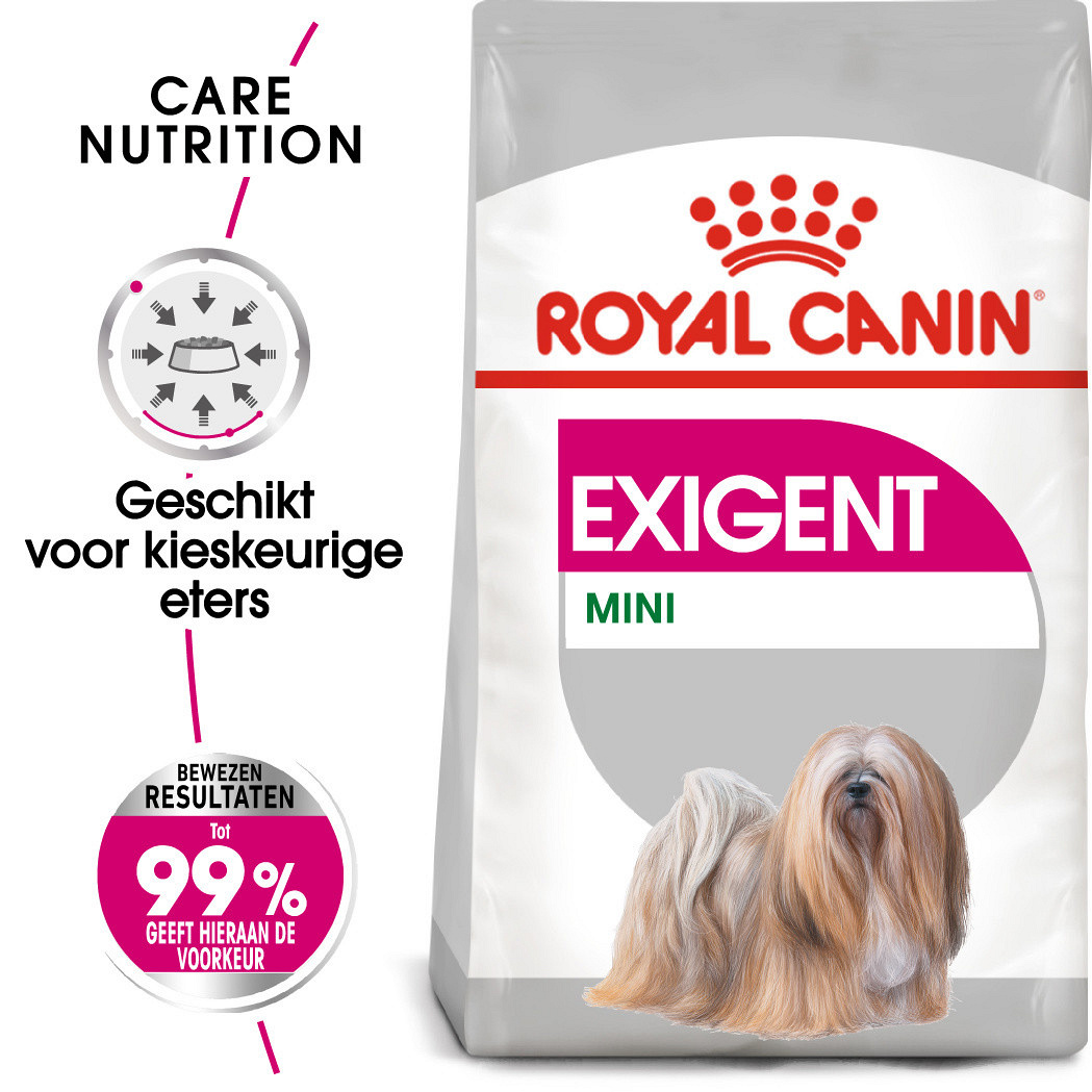 Royal Canin hondenvoer Exigent Mini is geschikt voor kieskeurige honden met een lichaamsgewicht van maximaal 10 kg en zit vol met voedingsstoffen ter ondersteuning van de gezondheid van jouw hond.