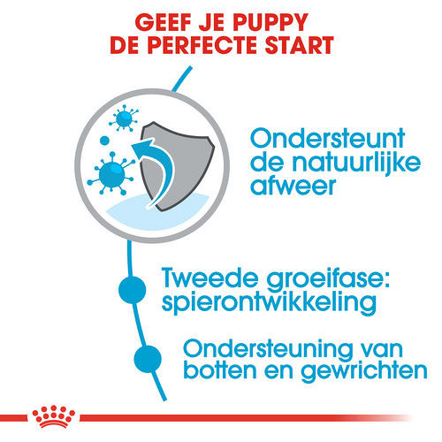 Voor pups van 8 tot 18/24 maanden van zeer grote rassen met een volwassen gewicht van meer dan 45 kg.