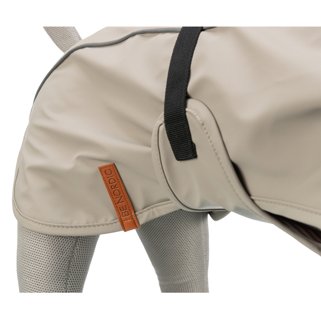 De Be Nordic regenjas Husum is een hondenjas die jouw viervoeter goed beschermd tegen wind en regen. De jas heeft een trekkoord op de kraag en een waterdichte rits voor het aanlijnen aan een tuig. Door de reflecterende elementen is jouw hond ook goed te zien voor het verkeer.
