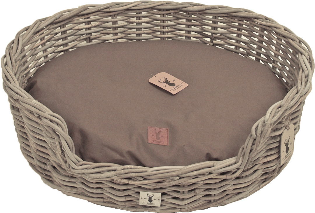 Robuuste, klassieke rotan hondenmand in een ovalen vorm. Bijpassend kussen los verkrijgbaar.