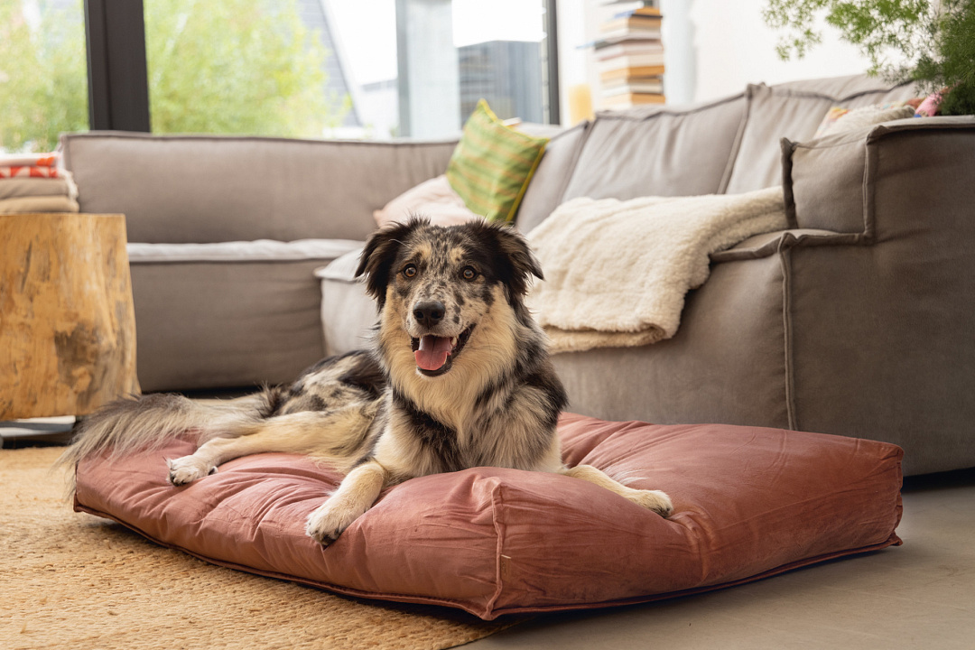 Lekker zacht ligkussen van fluweel waarop jouw hond heerlijk uit kan rusten. Afm. 100 x 70 x 15 cm.