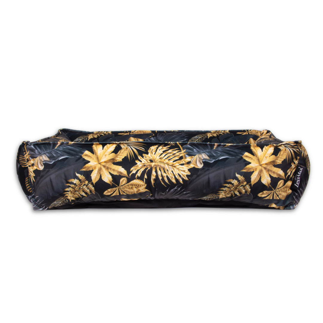 De Lex & Max Hondenmand Dubai is een prachtige stijlvolle mand met stevige opstaande wanden. De wanden zijn gevuld met schuim granulaat zodat jouw hond er heerlijk tegenaan kan liggen of zijn kop er op kan laten rusten zonder dat het inzakt. Door gebruik te maken van een luxueuze print op fluweelzachte interieurstof is deze mand een stijlvolle eyecatcher in ieder huis.
