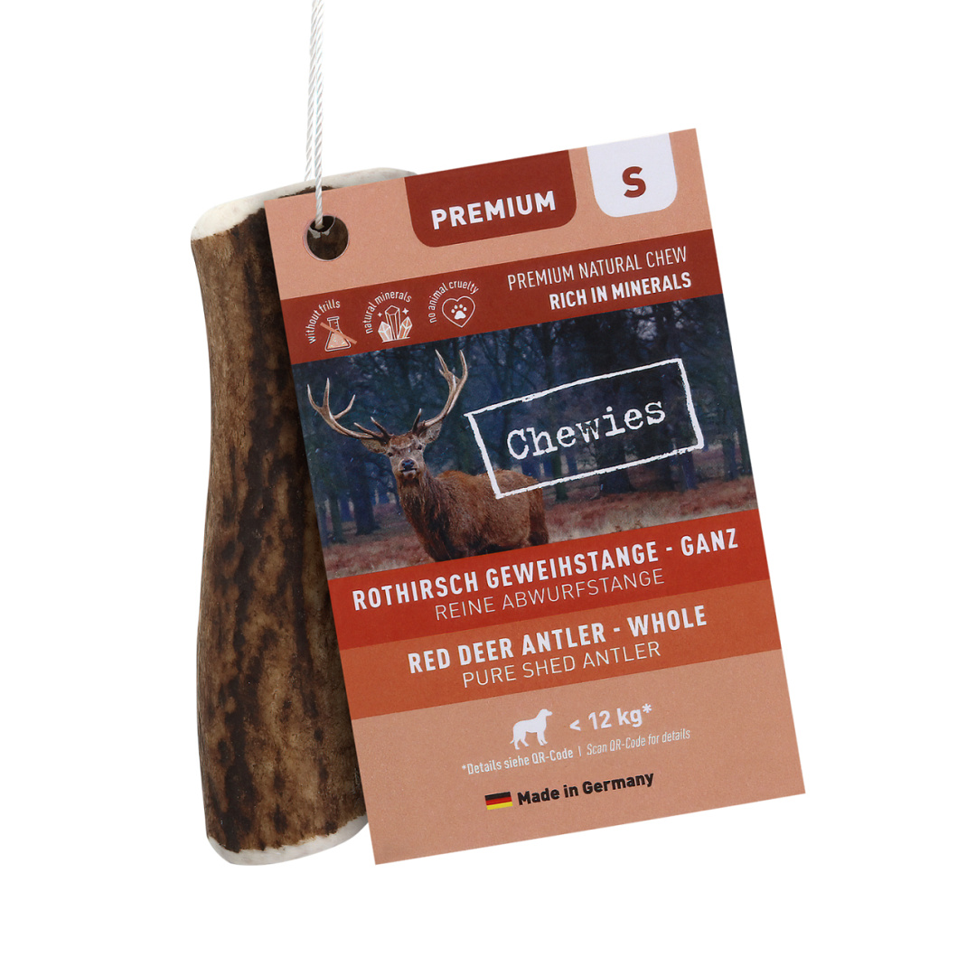 Het Chewies Edelhertengewei biedt honden wekenlang natuurlijk kauwplezier. Het heeft een benige substantie die het heerlijke geweimerg omringt. Het onbehandelde gewei is monoproteïne en ook bij uitstek geschikt voor voedingsgevoelige viervoeters. Het bevat ook calcium, dat helpt om gezonde botten en tanden te behouden. Het Chewies-gewei is een 100% natuurlijk afgeworpen gewei. Een Chewies-gewei is geurloos en brokkelt niet af.