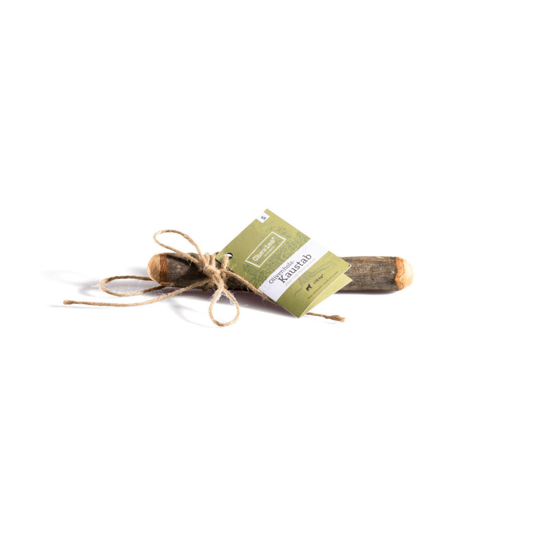 Kauwstok van olijfhout, voor langdurig kauwplezier zonder splinters.