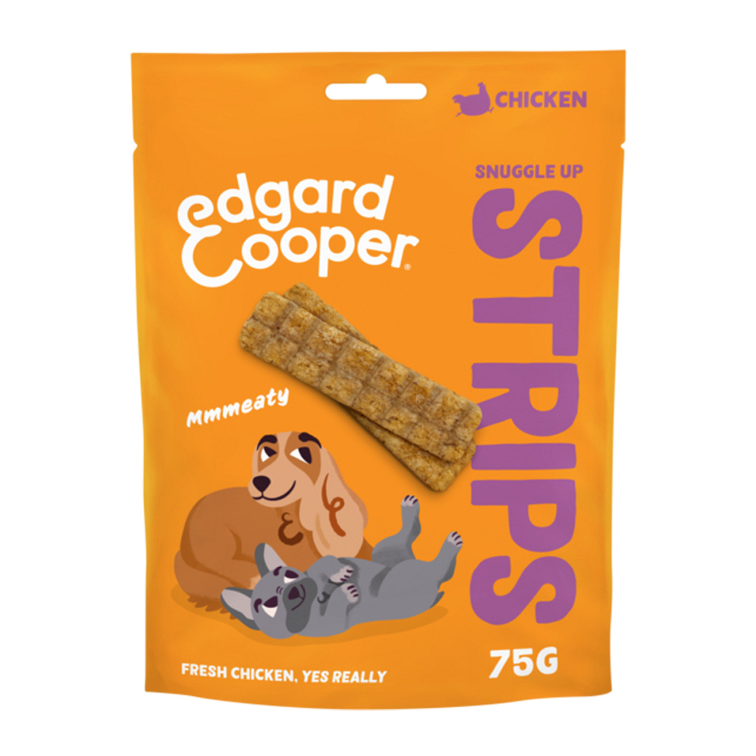 Liefde geven is de Edgard & Cooper Snuggle Up Strips met kip geven, een natuurlijke snack met vers vlees zonder toegevoegde suiker voor honden van alle leeftijden. Onze malse Strips zijn samengesteld op basis van een recept zonder granen. Ideaal voor speciale koestermomenten en de smak-smak-smakelijkste vertaling voor: "Ik zie je graag."