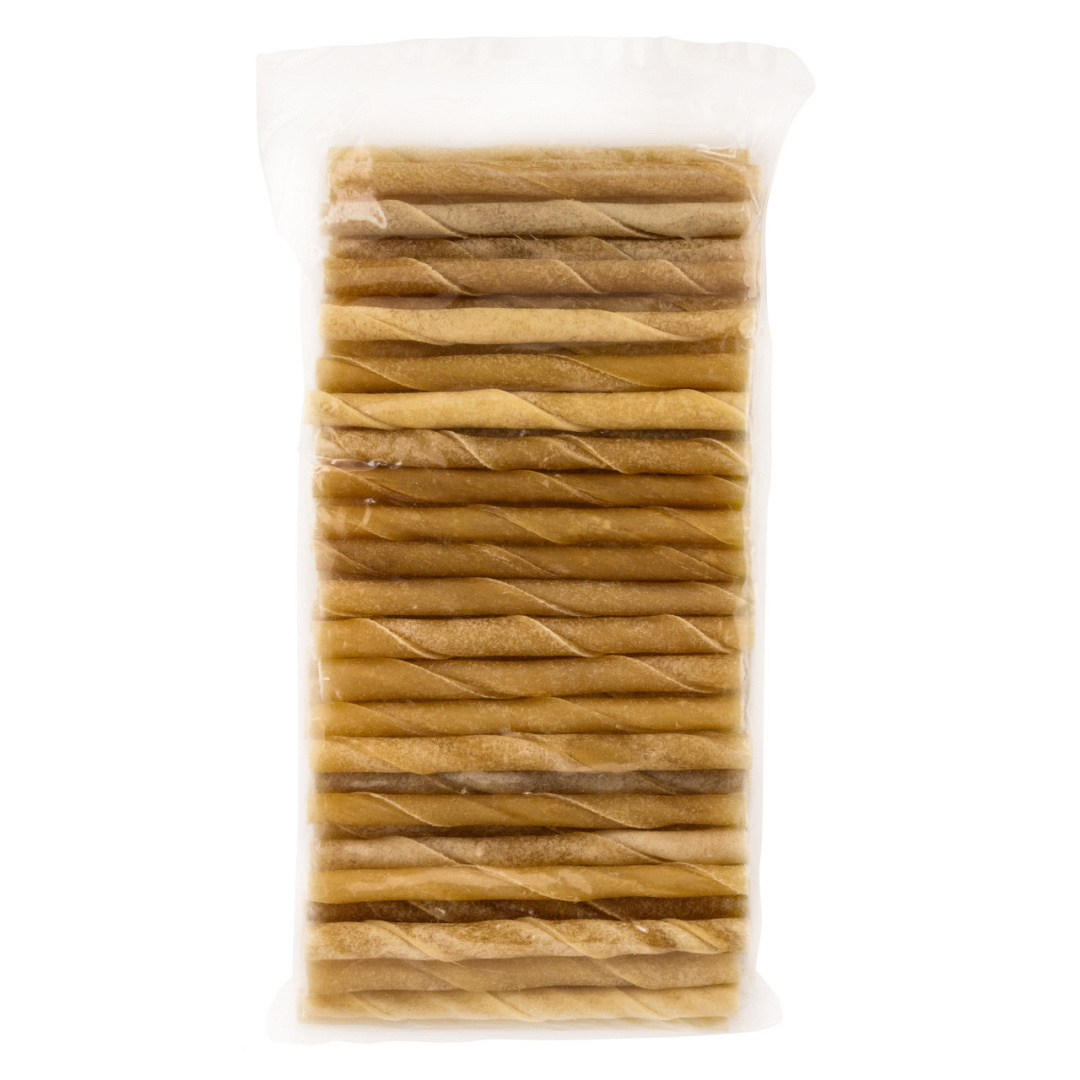 Gedraaide kauwstaafjes van onderhuids bindweefsel van rund.