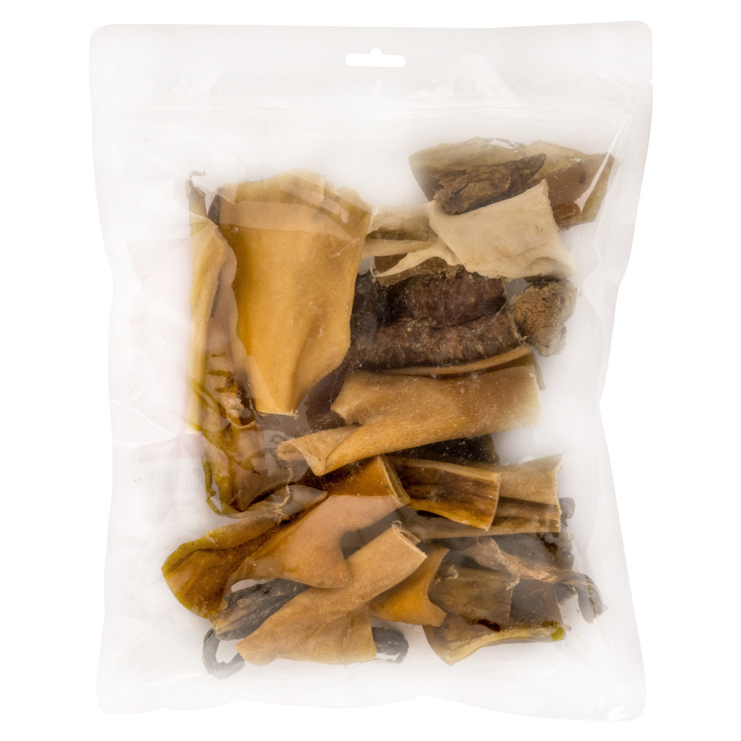 Landman Slachtmix Rund/lam/kip is een natuurlijke mix van pens, kophuid, poot, oor, gedroogde lever, staart, slokdarm en long van rund, lam en kip. Glutenvrij.Kauwhardheid (1 - 5): 3