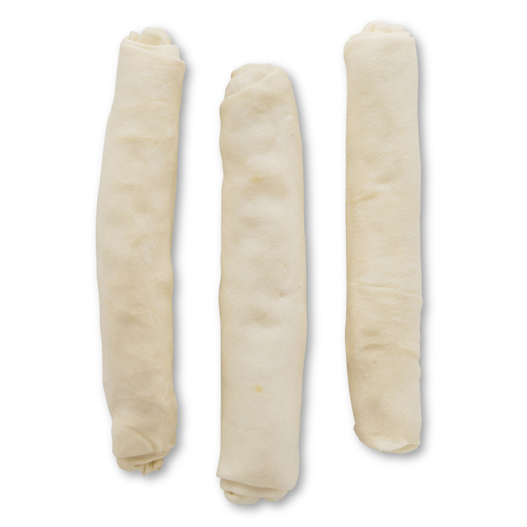 Opgerolde wit runderhuid voor je hond. Heerlijk als snack of tussendoortje.