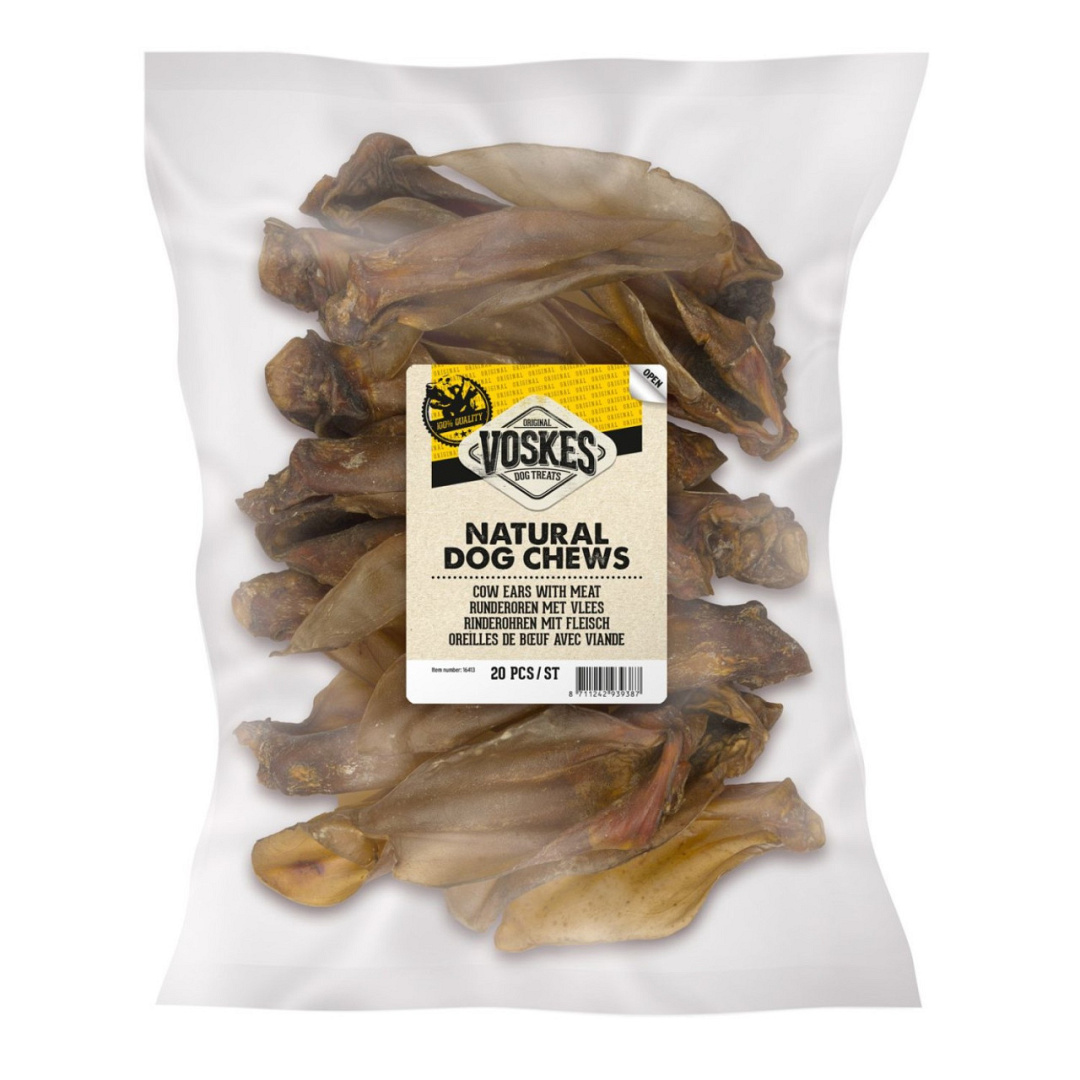 Voskes runderoren zijn een natuurlijke kauwsnack voor lang kauwplezier van de hond. Deze snack is 100% natuurlijk, luchtgedroogd, gerookt en vrij van toevoegingen.