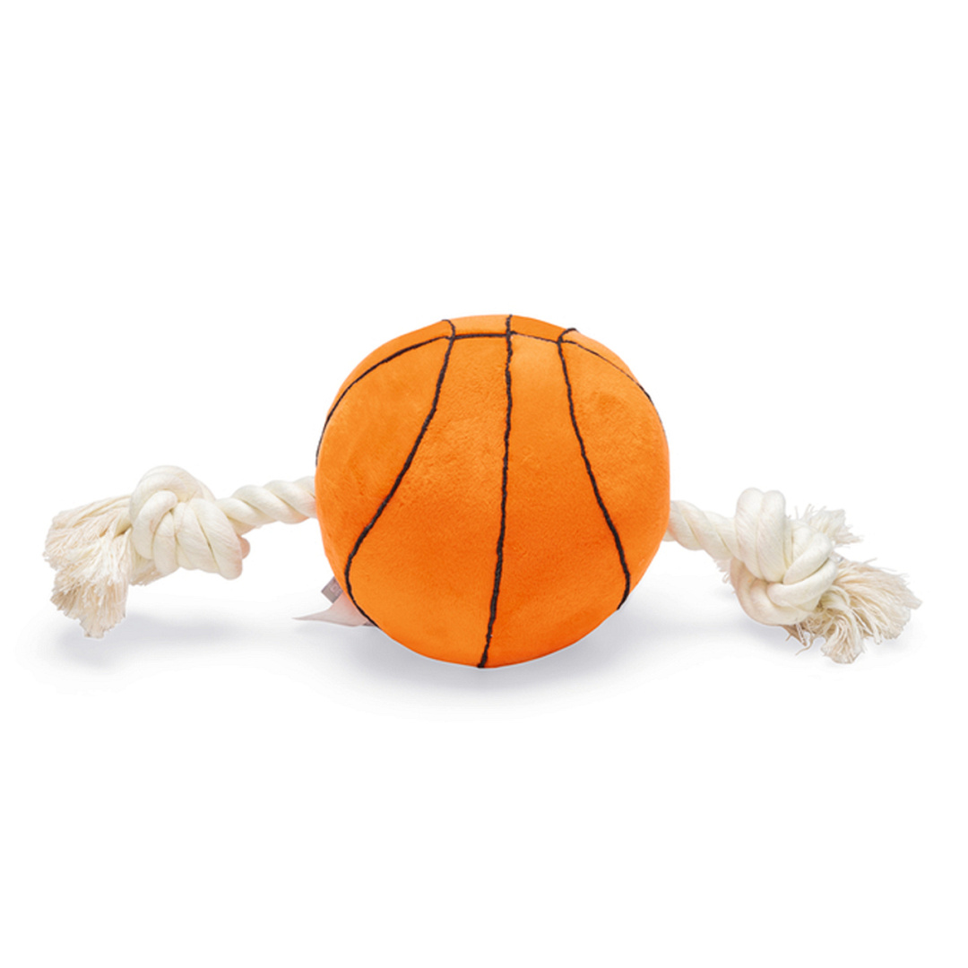 Pluchen basketbal met flostouw, voor de leukste apporteer- en trekspelletjes.