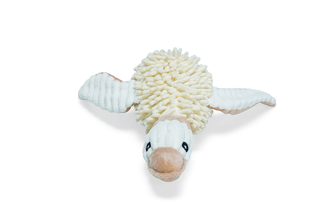 Heerlijk zachte hondenknuffel in de vorm van een eend om mee te spelen of tegenaan te kruipen. Gemaakt van gerecycled materiaal. Geluidloos.
