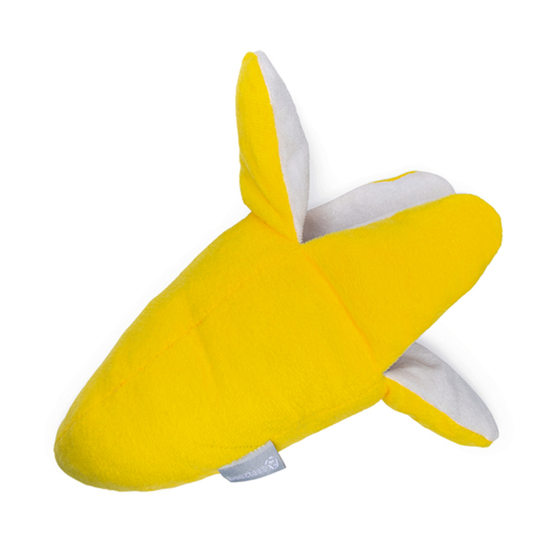 Pluchen hondenknuffel in de vorm van een aap die in een banaan verstopt zit. Kan uit elkaar getrokken worden.