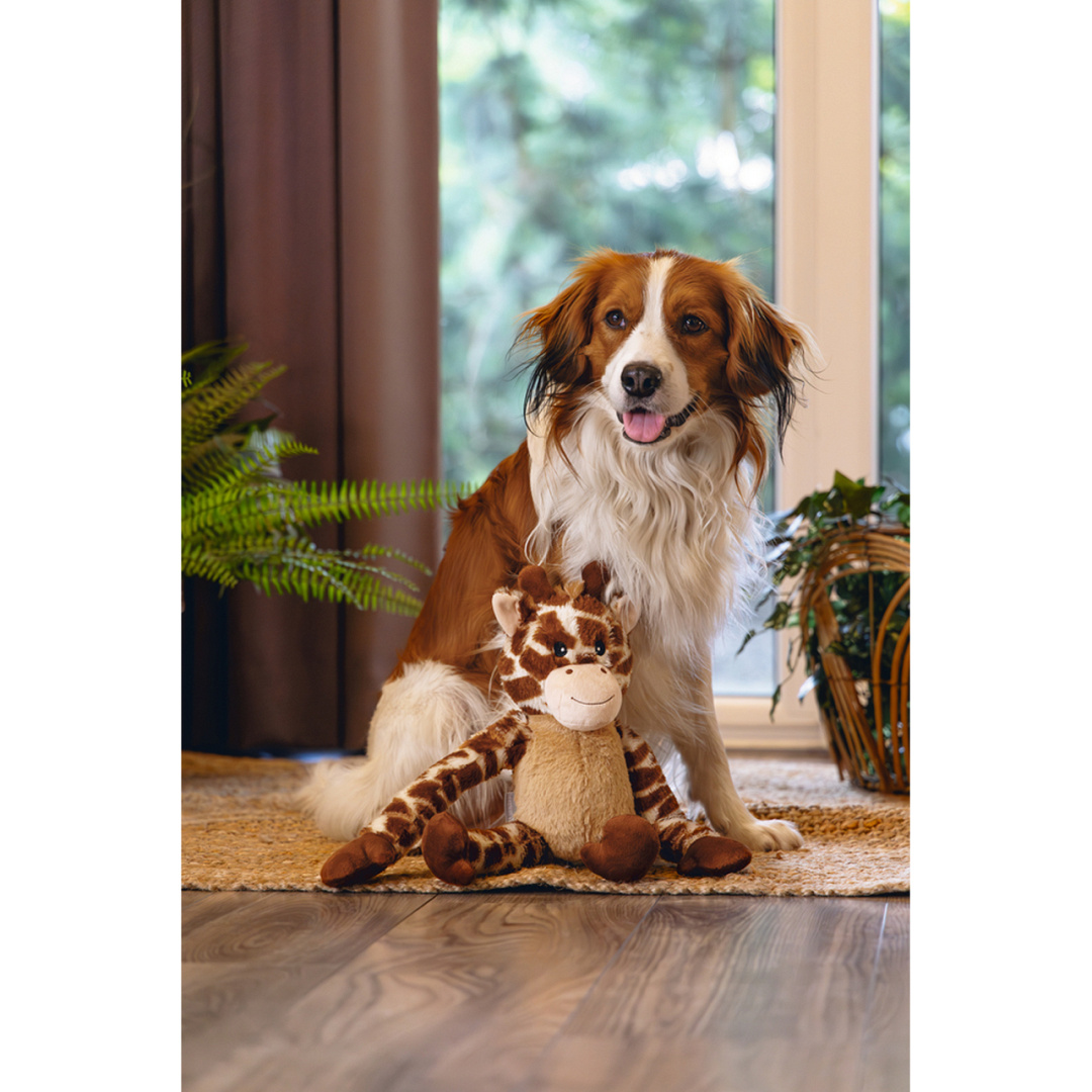 Pluchen hondenknuffel in de vorm van een giraf. Zonder piep.