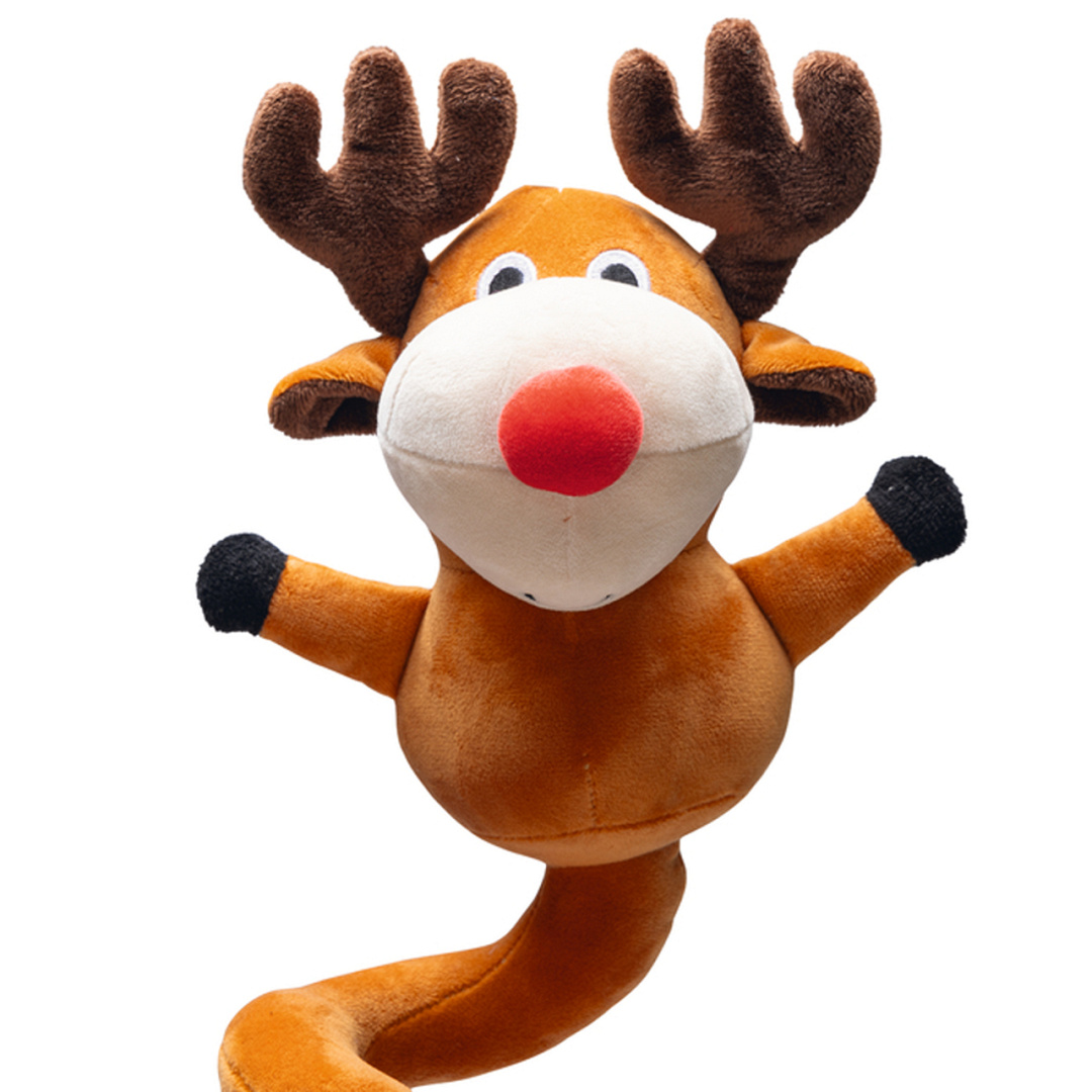 Breng de kerststemming in huis met Beeztees hondenspeelgoed Rendier Spiraal! Dit schattige hondenspeeltje in de vorm van een vrolijk rendier zorgt voor eindeloos speelplezier voor jouw hond. De spiraal zorgt ervoor dat de kerstman beweegt en wiebelt, wat jouw hond uitdaagt om te spelen en te ravotten. Gemaakt van zacht pluche, is dit rendier niet alleen leuk om mee te spelen, maar ook heerlijk om tegenaan te kruipen. Het perfecte kerstcadeau voor jouw hond!