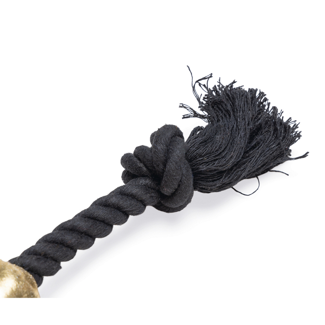 Pluchen hondenspeeltje met flostouw en knisperfolie voor extra speelplezier.