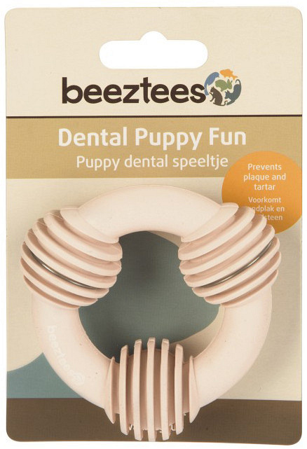 De Beeztees Puppy dental ring is een multifunctioneel speeltje voor je pup. Door op deze ring te kauwen, wordt de pijn van het tanden krijgen verzacht. Ook stimuleren de ribbeltjes op de ring de bloedsomloop van het tandvlees. Verder voorziet deze dental ring met vanillegeur in de speelbehoefte.