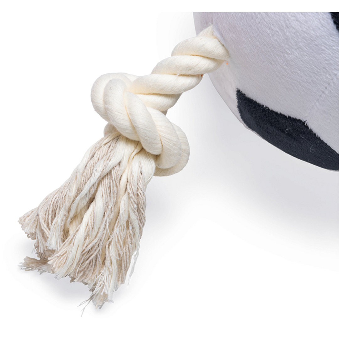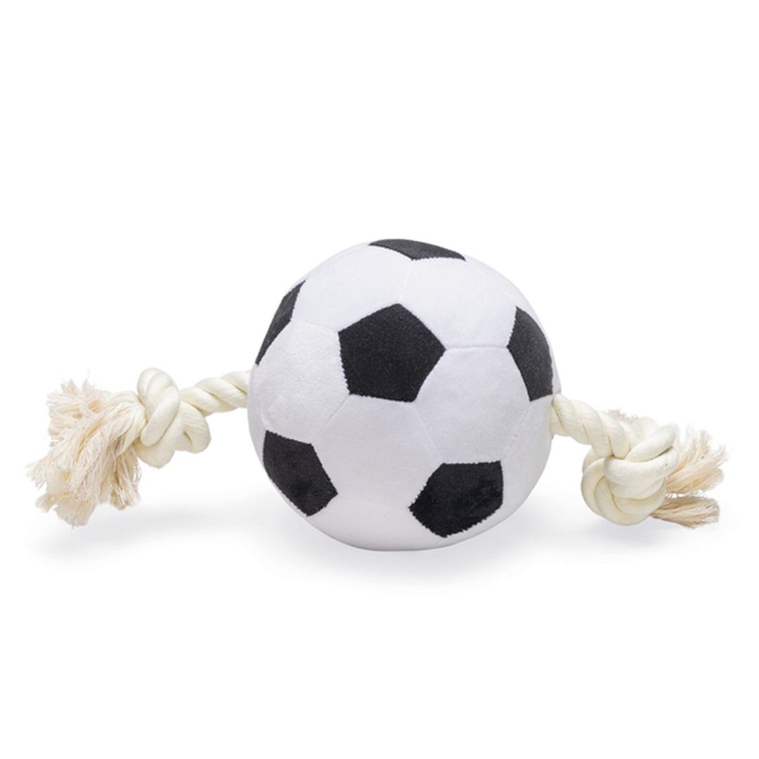 Pluchen voetbal met flostouw, voor de leukste apporteer- en trekspelletjes.