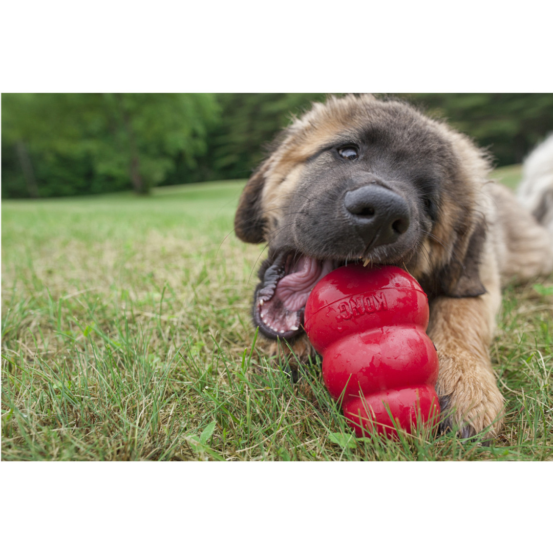 Kongs klassieke rode speeltje voor gemiddelde kauwers. Speelt in op de instinctieve behoefte van de hond.