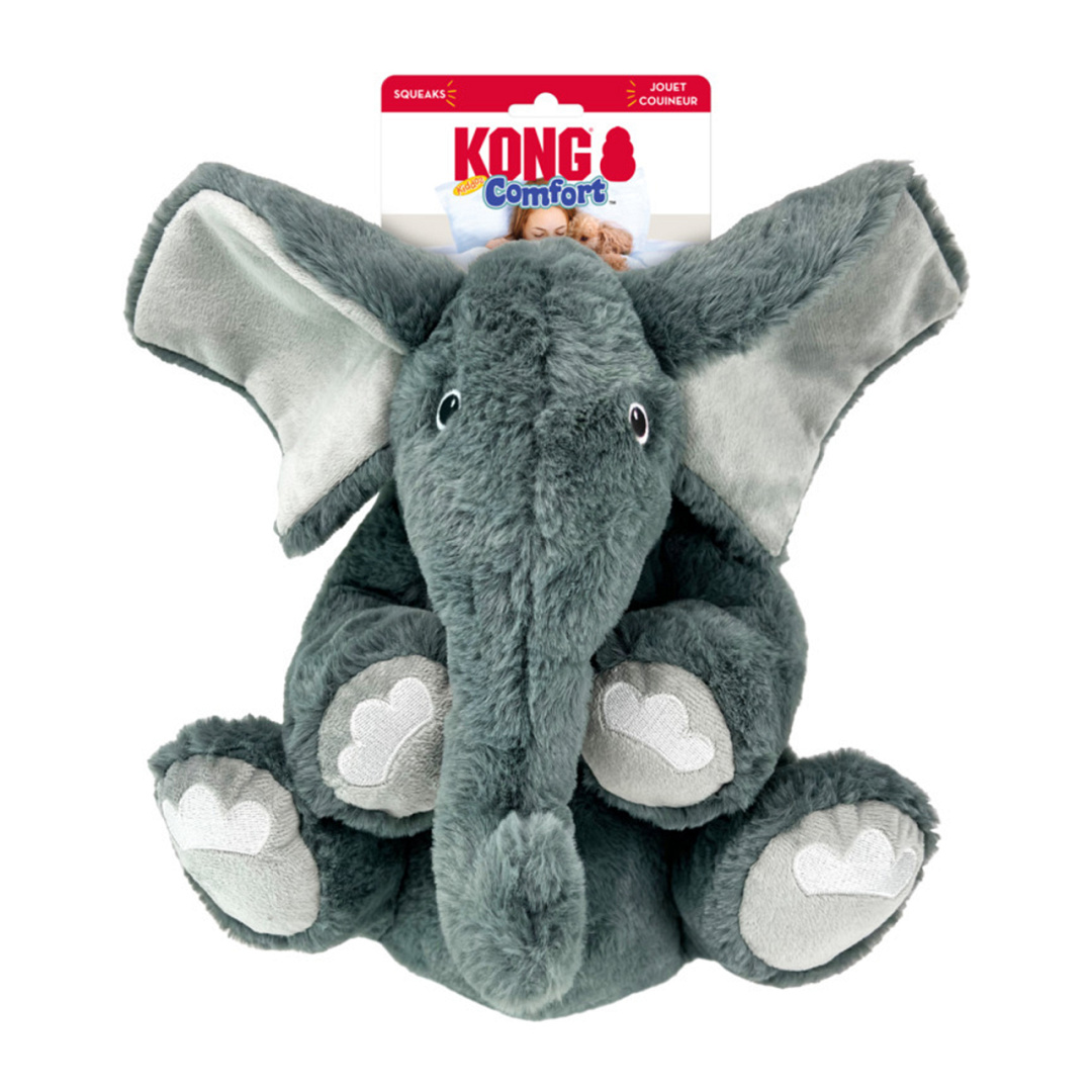 Kong Comfort Kiddos olifant is ideaal voor jouw hond om lekker mee te spelen of om mee te knuffelen. De pluchen olifant heeft een speciale laagtonige pieper waarmee de nieuwsgierigheid van jouw hond wordt geprikkeld.