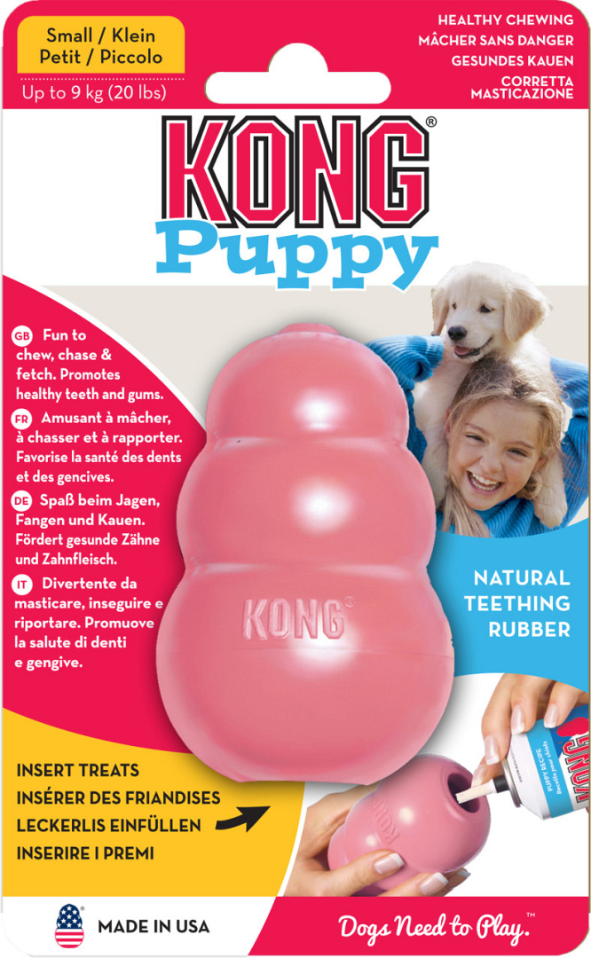Het klassieke speeltje van Kong met exclusieve puppy rubberformule speciaal ontworpen voor de puppy met doorkomend gebit voor het verzachten van pijnlijk tandvlees. Kleur niet vrij te kiezen.