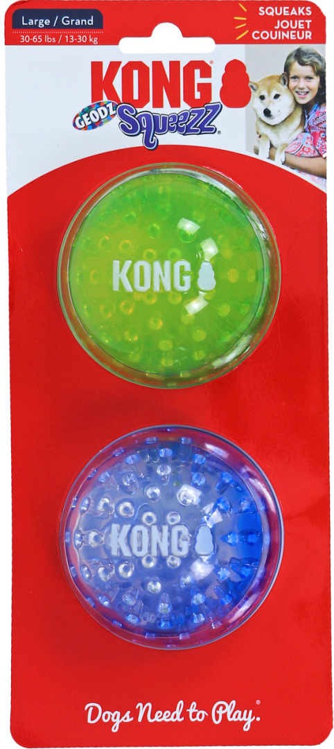 De Kong Squeez Geods Bal heeft een uniek ontwerp dat het apporteerplezier van jouw hond vergroot. De knetter- en piepgeluiden van de bal ontsteken het natuurlijk jachtinstinct van jouw hond. Het duurzame materiaal zorgt voor langer speelplezier. Het stuiteren van de bal vergroot de betrokkenheid van je hond, met name van puppy's. De bal kan drijven en is dus geschikt om mee te apporteren op water.