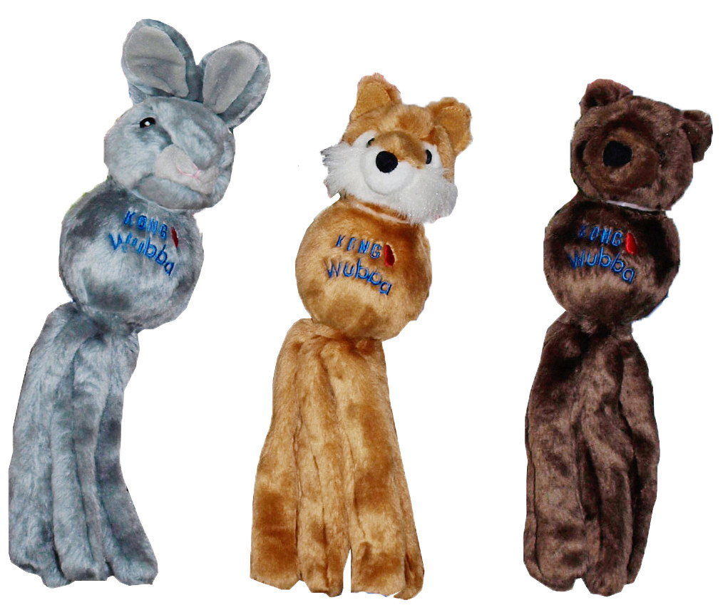De Kong Wubba Friend is een schattig piep- en schudspeeltje. Dit veelzijdige speeltje is perfect voor gebruik binnen en buiten en door de slingerende staarten is ze gemakkelijk op te pakken en ver weg te gooien. Elk speeltje is bedekt met zacht pluche en daarom ook erg populair als een troostspeeltje voor de nacht.