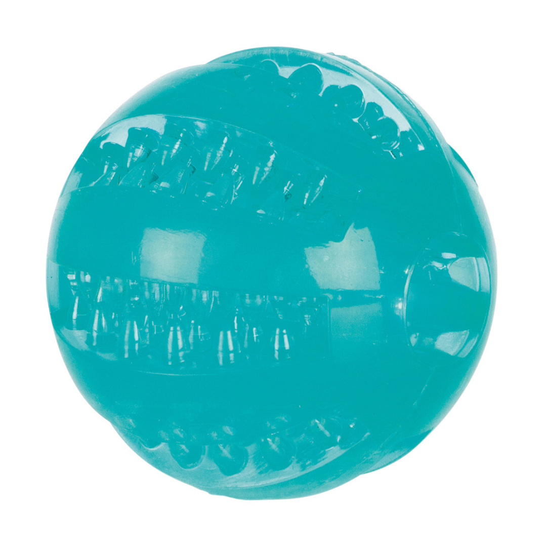 Extra sterke bal met frisse muntsmaak en noppen die het tandvlees van jouw hond masseren als hij/zij er op kauwt.