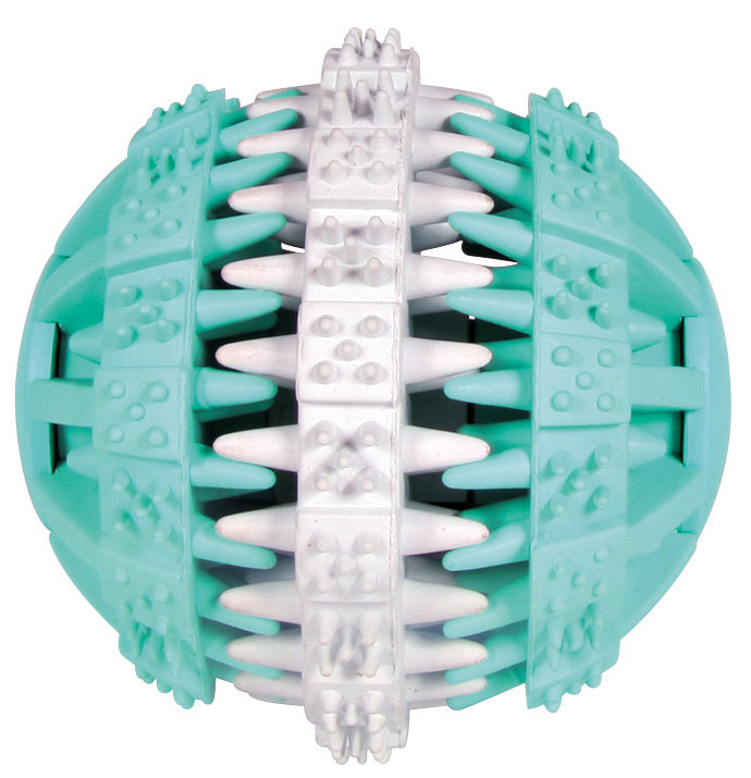 De TRIXIE Denta Fun Bal is gemaakt van natuurrubber en heeft een frisse muntsmaak. Doordat jouw hond op de bal kauwt wordt het tandvlees gemasseerd.
