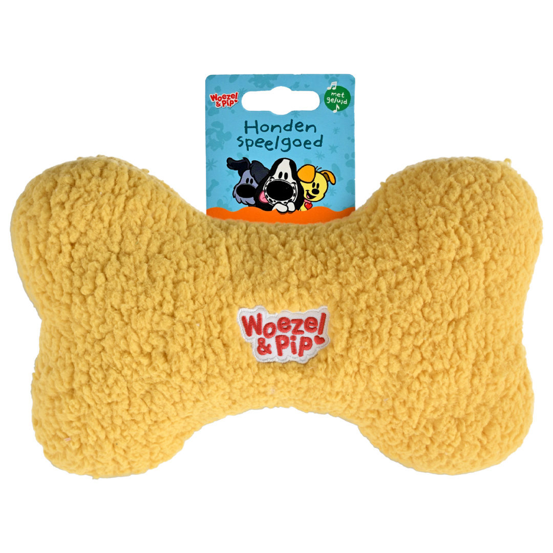 Ontdek het ideale knuffel- en speelmaatje voor je hond: het Woezel & Pip pluchen bot! Dit onweerstaanbare speelgoed combineert comfort, vrolijkheid en actief spel in één schattig ontwerp. Het bot is bekleed met heerlijk zachte schapenwollen pluche, perfect om tegenaan te liggen na een actief speelmoment. De aaibare stof maakt dit speeltje extra geschikt voor honden die van knuffelen houden en voor gezinnen met jonge kinderen die dol zijn op de wereld van Woezel & Pip.