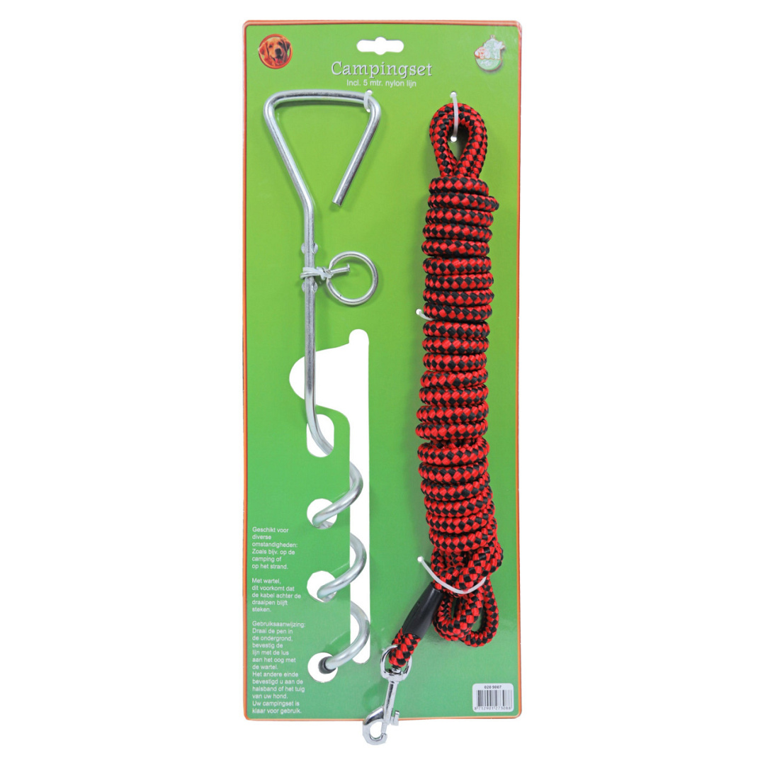 Campingset met 5 mtr lijn en draaipen ideeal voor op de camping of het strand