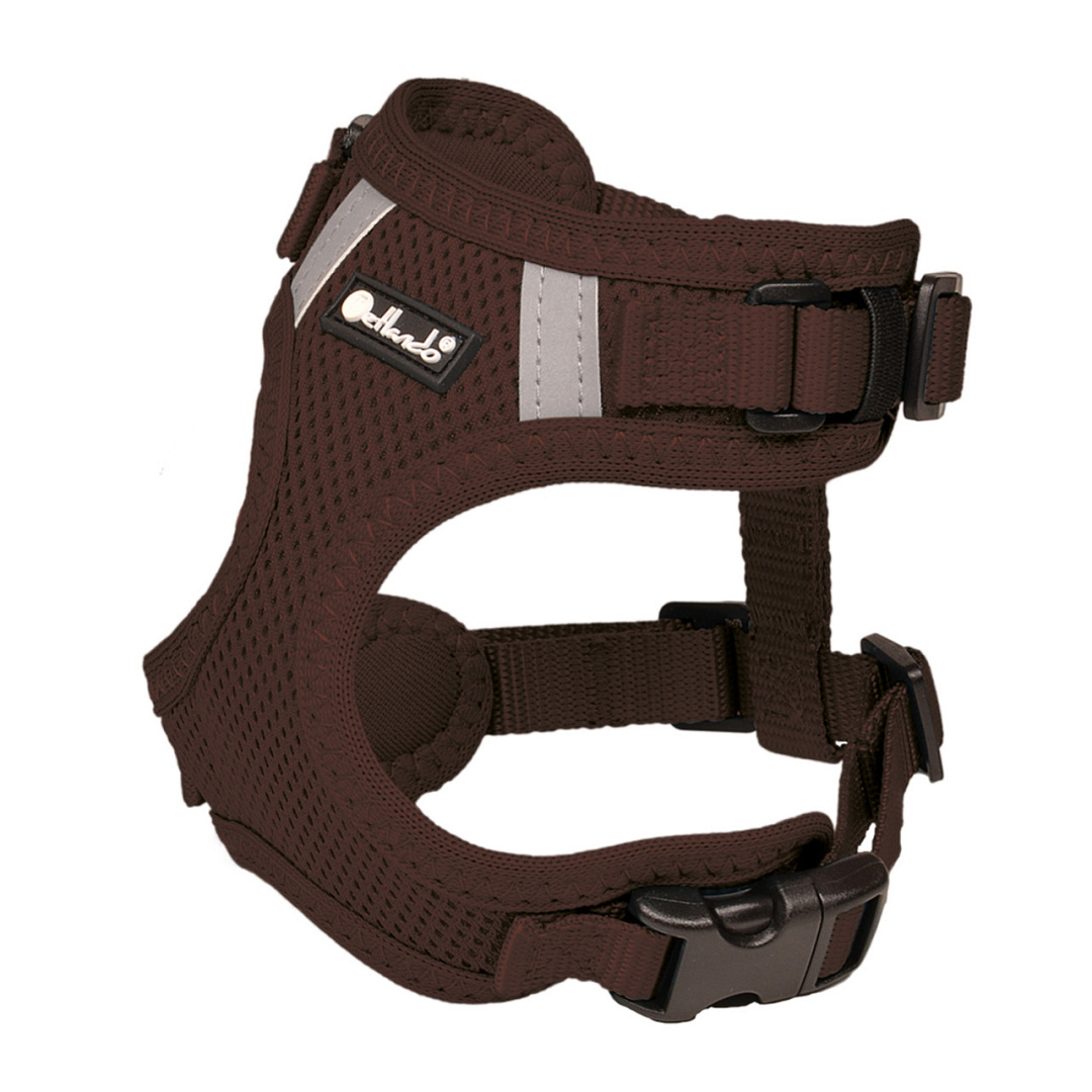 Het tuigje is eenvoudig aan te trekken en bij de nek, en de borst te verstellen. Voorzien van reflecterende strepen. Uitermate geschikt voor de wat kleinere rassen.