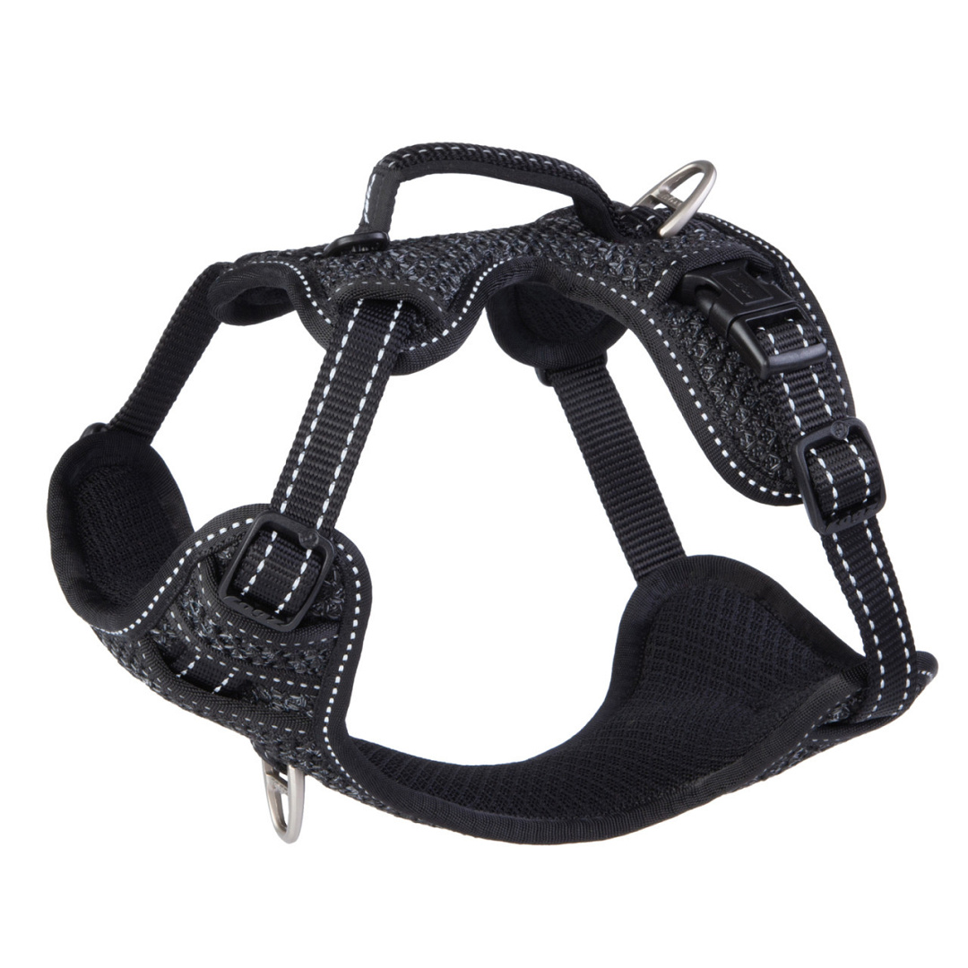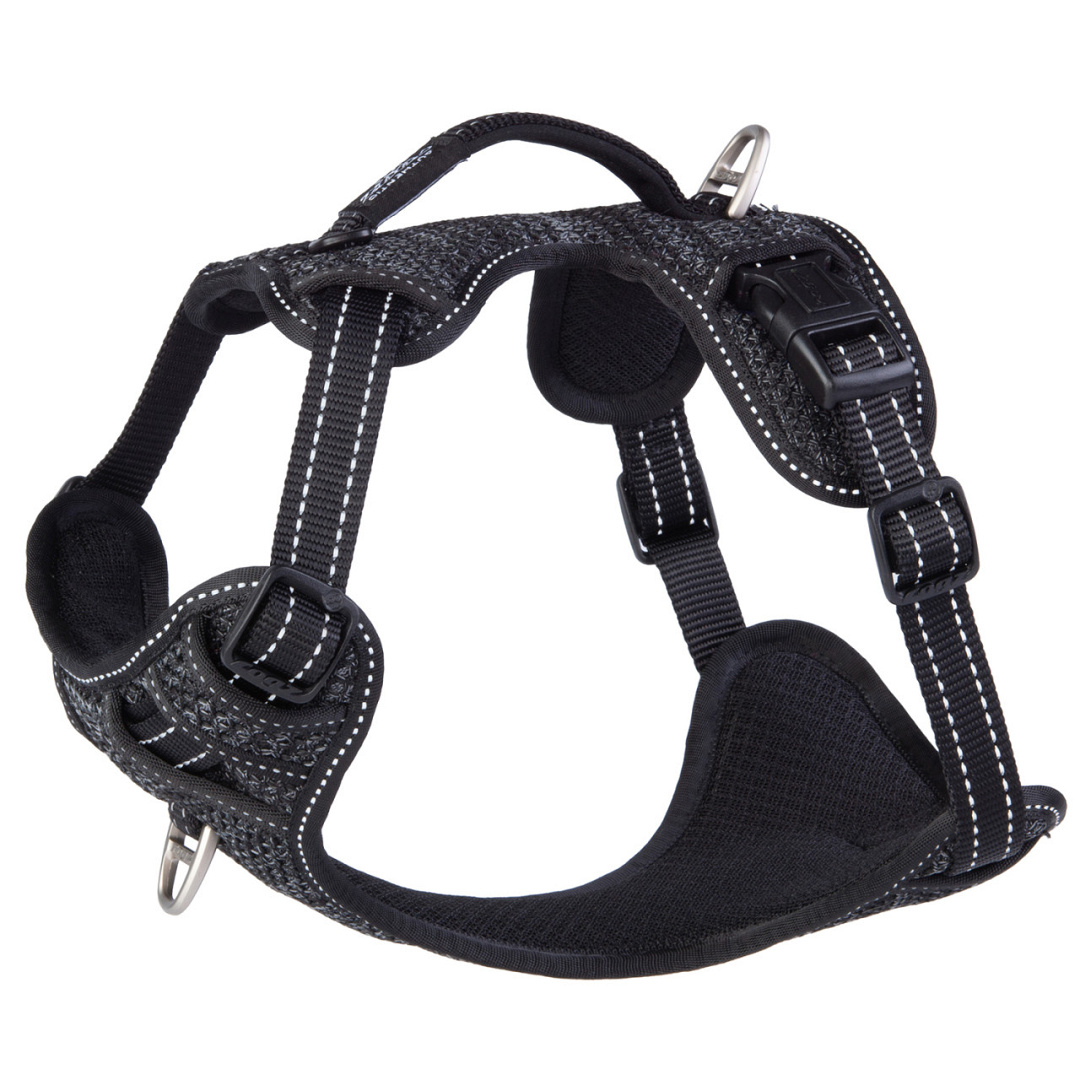• 1 ring zit op de rug voor dagelijks gebruik en 1 ring zit voor op de borst voor extra controle en sturing.