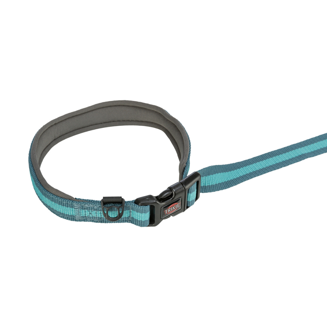 De TRIXIE jogginglijn is ideaal voor het sporten met jouw hond. De lijn heeft een schokdemper waardoor het plotseling trekken van je hond wordt opgevangen. De lijn kun je in je hand houden of over je arm/schouder dragen.