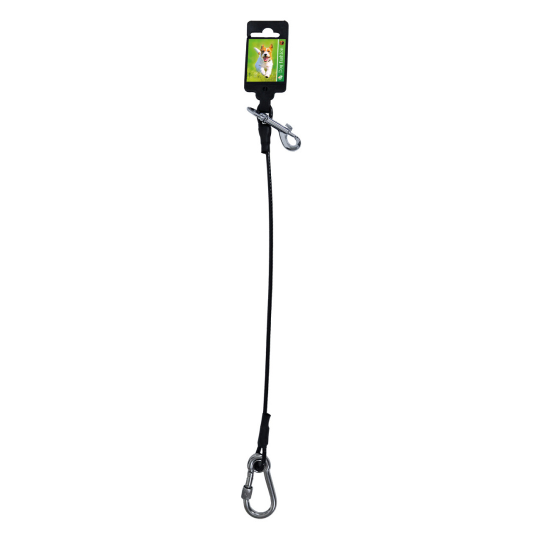 De Vastleglijn Gecoat Staaldraad is voorzien van een vergrendelbare, metalen muskaton aan de ene kant en een metalen karabijnhaak aan de andere kant. Dit zorgt ervoor dat dit product geschikt is om jouw hond vast te zetten in tal van situaties.