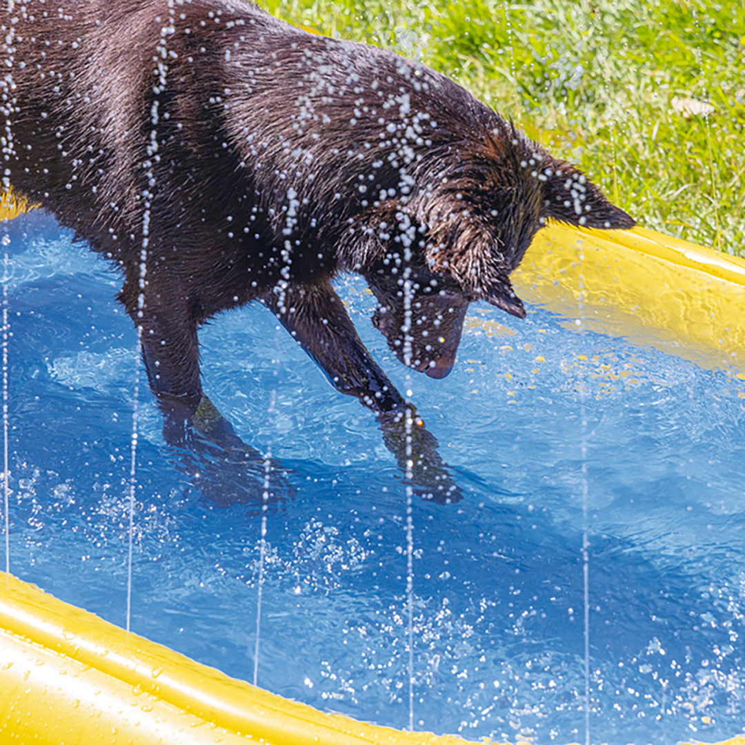 Het Beeztees hondenzwembad Palmy ziet er niet alleen fantastisch uit door het palmboompje aan de zijkant, maar geeft jouw hond ook verkoeling tijdens tropische temperaturen. Dit zwembad is niet zo diep, waardoor jouw hond er lekker zijn poten in kan afkoelen of erin kan liggen. In de rand van het zwembad en in de palmboom zitten sprinklers. Zodra je de tuinslang aansluit op het zwembad, komen er waterstralen uit de palmboom en de rand van het zwembad. Dit zorgt voor extra verkoeling en plezier. Dit zwembad, geschikt voor honden, is perfect voor verfrissing tijdens warme zomerdagen!
