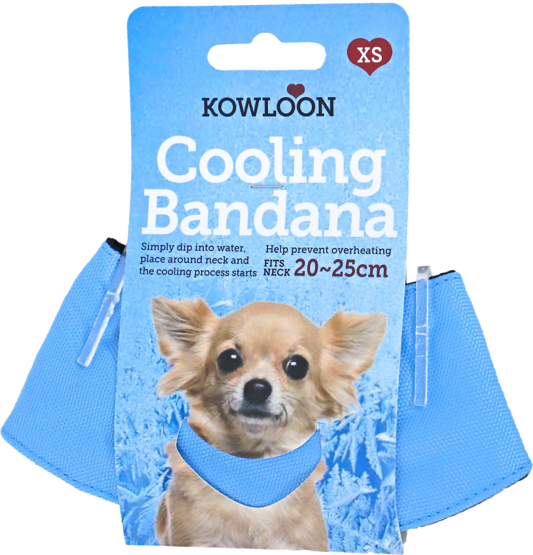 Deze Kowloon Cool Bandana helpt je hond met afkoelen. Leg de halsband 5 minuten in het water. De kristallen in de halsband zullen hierdoor een verkoelend effect geven voor 5 tot 6 uur.