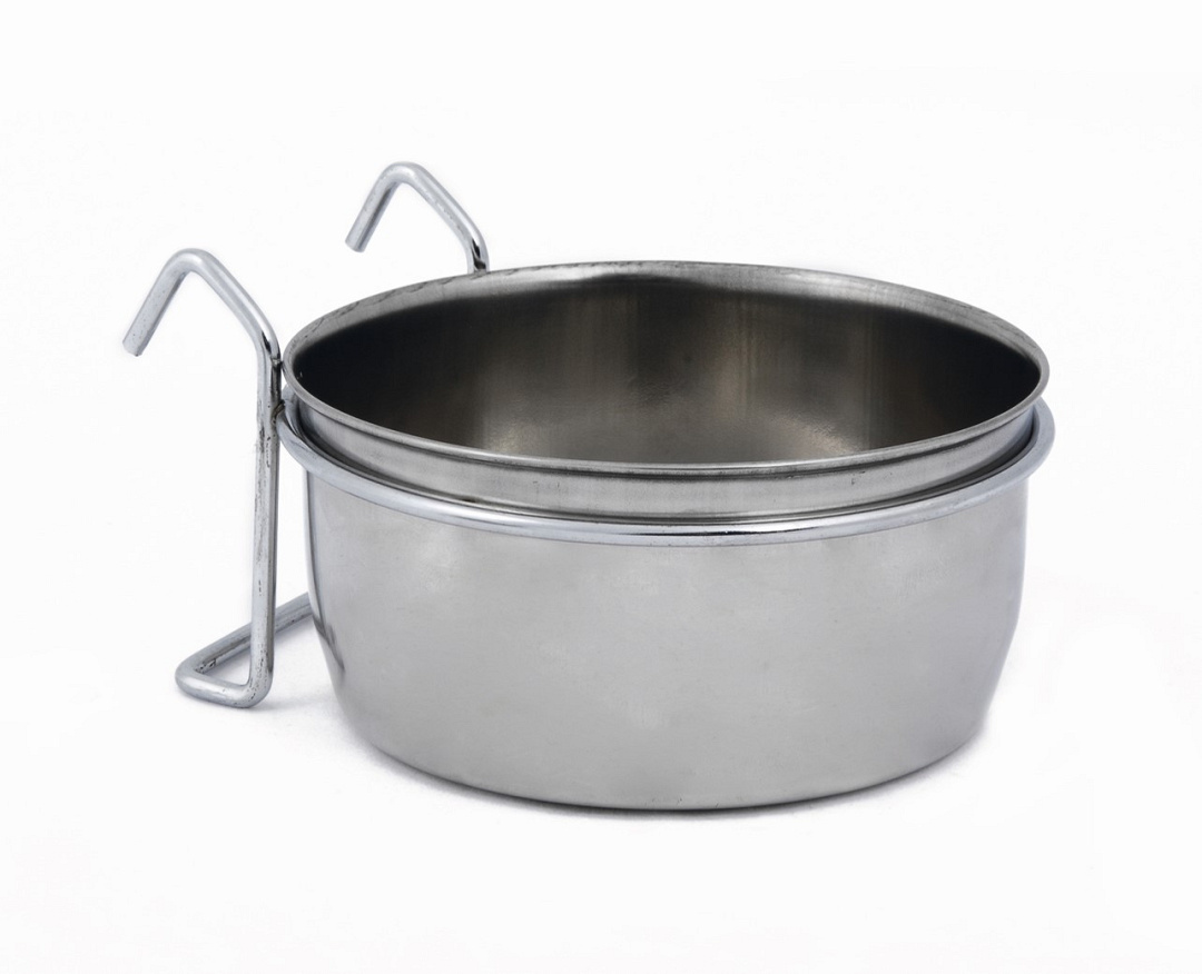 De Beeztees voerbak CoopCup met houder is een handige hondenvoerbak. Deze metalen voerbak is voorzien van twee haken zodat deze gemakkelijk op kan worden gehangen aan bijvoorbeeld een bench of kooi. Je kunt het bakje ook gewoon neerzetten. Het enige wat je hiervoor hoeft te doen, is de ring te verwijderen.