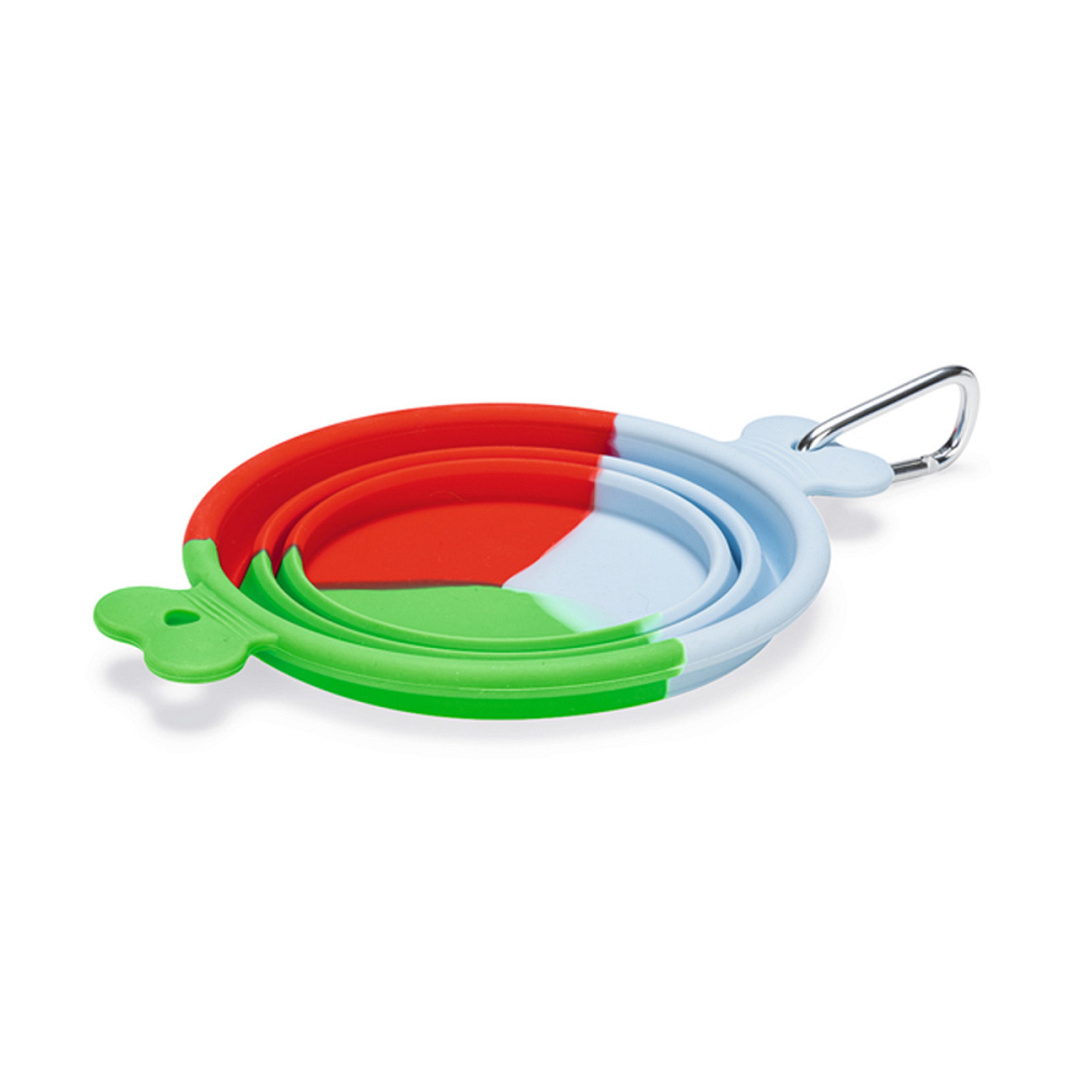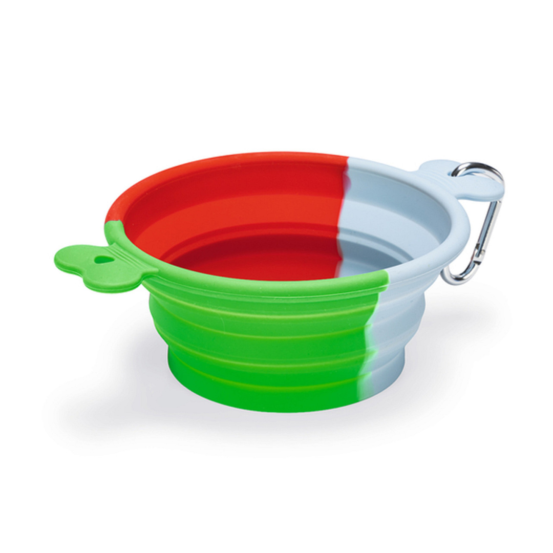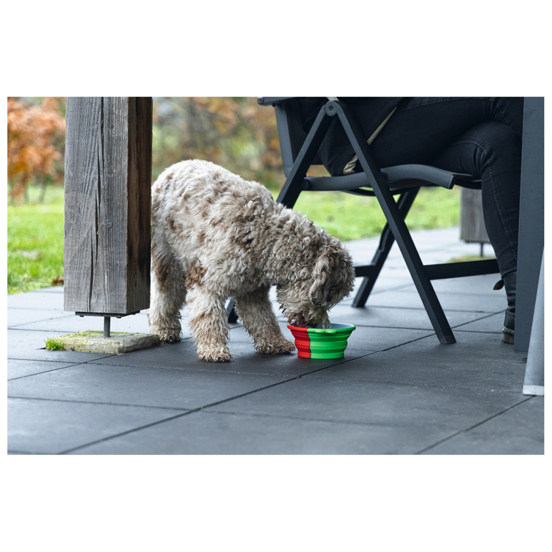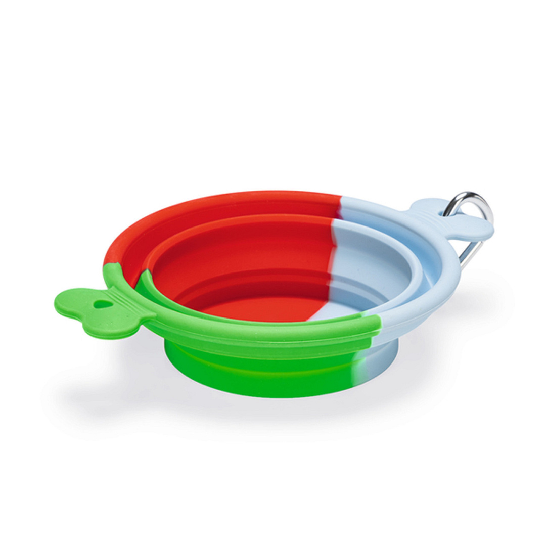 Inklapbare voer- of drinkbak voor onderweg. Met karabijnhaak voor makkelijk meenemen.
